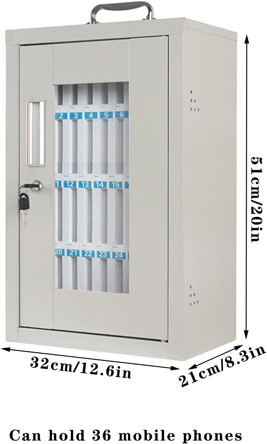 Benefits 1. Made of stainless steel, simple and beautiful, sturdy and practical, not easy to damage and deform 2. The slot part is pearl cotton, which can protect the phone from wear and tear. 3. Transparent mobile phone locker door, digital sticker, each slot has a digital label, which is convenient for mobile phone management 4. Metal handle with handle on the top, easy to move and carry 5. ENGLISH: Security lock with key keeps your phone safe so you don't have to worry about losing it. Key cabinet specification Material: metal Size 1: 28×24×21cm(can hold 12 mobile phones) Size 2: 40×29×21cm(can hold 24 cell phones) Size 3: 51×32×21cm(can hold 36 cell phones) ables) Please lend Pay attention to advice. 1. About Selling List --------- We only sell cell phone safes and do not include other reference items.