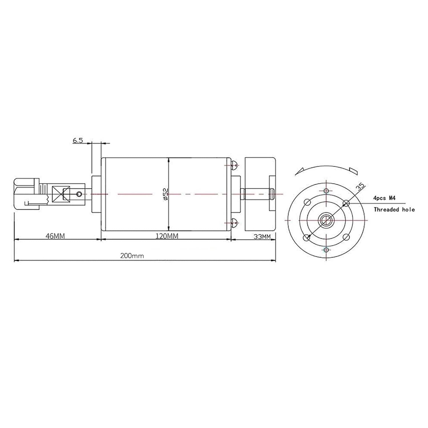 1. Working parameters: CNC spindle motor, with 500W power, 0.01-0.02mm high fusion accuracy, 12000rpm idle speed, 600mN torque. M. 2. Carving materials: can be used to carve wood, plastic, acrylic, PVC, PCB, carbon fiber, density board and other materials, with strong practicality. 3. Air Cooling Fan The rear end of the motor is reinforced with cooling fan, which can work safely for a long time, and has high speed and low operating noise. 4. With ER11 Collection The 52mm diameter spindle motor is equipped with ER11 collet, can be combined with bracket to ensure high carving accuracy, no deformation. 5. Wide Application This spindle motor is widely used in mini CNC routers, engraving machines, milling machines, etc., which is simple and practical. Specifications: Item Type:Spindle Motor Power: 500W Operating voltage: 48V DC Idle speed: 12000 RPM Torque: 600 mN.m. Motor diameter: approx. 52 mm. Nozzle piece length: approx. 45mm Chuck piece diameter 16 mm. Total motor length: approx. 200mm Insulation resistance: >2MΩ Insulation Dielectric Resistance: 400V Radial Spindle Drain: 0.01-0.03 High Precision Application: can be used for wood PCB engraving, punching, etc. How to use: Install and use directly. Package List: 1 x Spindle Motor 1 x ER11 Tweezer 1 x Nozzle Nut