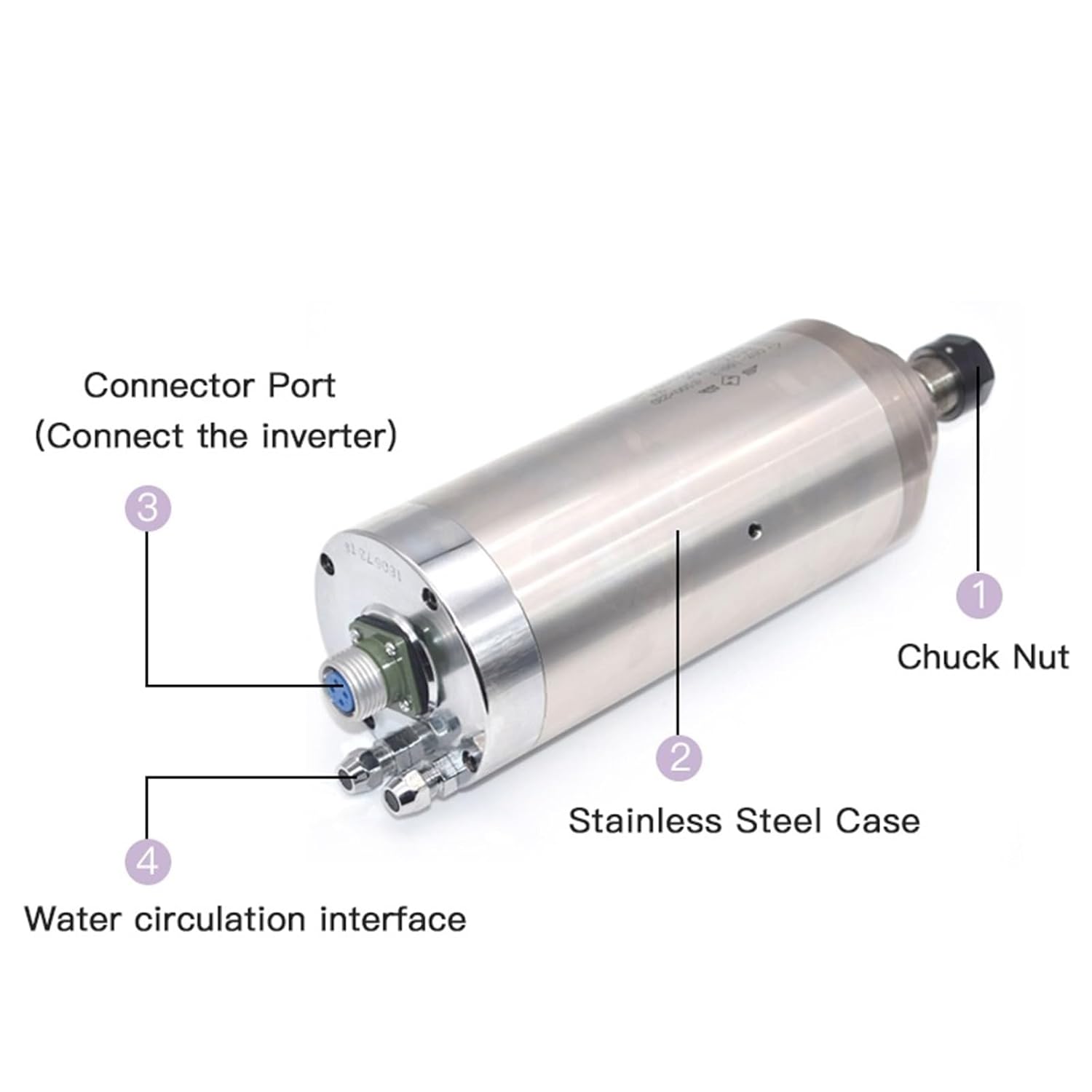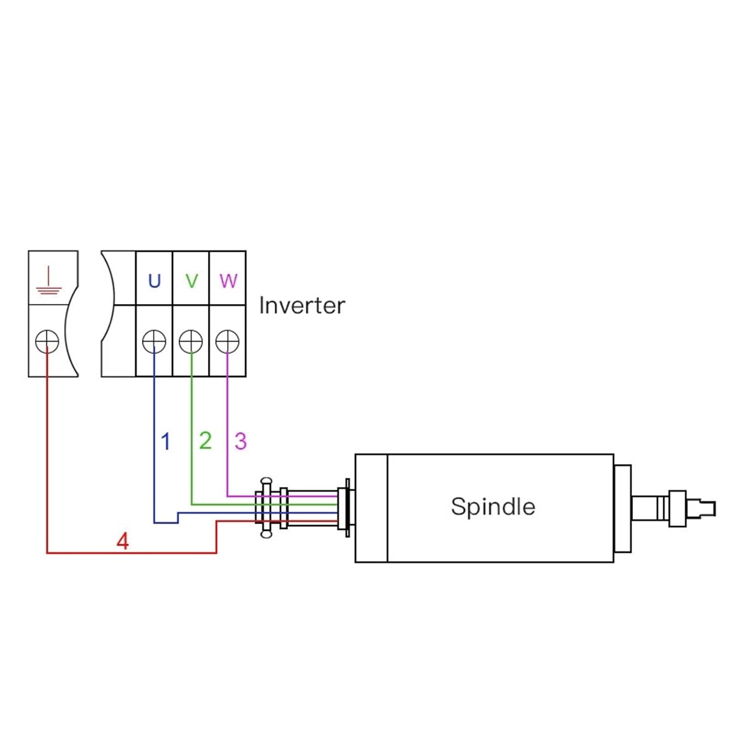 motorPneumatic MotorsMain Application:Engrave for wood bamboo normal PCB PVC PMMA plastic duotone board(ABS)and etc nonmetal also can engrave on gold silver copper aluminium Pb etc soft metal surface working.(Please pay more attention this is wood working spindle only can used for wood working and aluminum working please don't use it for steel. If you need steel working please check the metal spindle thank you!)Product Features:1. Hi-Q 5.5KW 220V 12A / 380V 10A ER25 Water Cooled Spindle 4bearings2. 5.5kw 220V or 380V VFD Inverter3. 125mm Mount Bracket4. 80w Water Pump5. 4m Tube 6x8mm6. 8Pcs ER25 Chuck7. 4Pcs PlateFeatures:1. P4 angular contact bearings 2×7002C P4 DT & 27002C P4 DTincrease spindle life New type4 bearings2 Longer length make the torque bigger more powerful.3. Carefull assembly make the spindle more precisional.4. Precision 0.01mm.Coaxial degree less than 0.0025mm5. We have certificates and high-quality products can stand the test! ! !Product Parameters:1. Size: 125x298mm2. Speed Ways: Through 3-phase output inverter and adjust the inverter frequency to change the spindle speed.3. Cooling: Water cooling 4. Power Interface: Optional H17-4 pins waterproof air plug. The air plug marked "1" "2" "3" "4" "1" "2" "3" were connected to inverter (U V W) 4. Connected inverter ground. (Pay attention! Our spindle "4" connecting to GND promised personal safety !!)5. Power: 5.5kw6. Voltage: 220V 12A / 380V 8A7. Frequency: 0-400Hz8. Speed: 0-24000rpm9. Runout Off: 0.01mm10. 4pcs angular contact ball bearings11. Bearing Type: 2 × 7002C P4 DT & 2 7000C P4 DT12 Water Cooling ER25 collet chunk13 Grease LubricationParametersPower 55kwInput VoltagePhase): 220v(1 Phase)/380v(3 Phase)Output Voltage(Phase): 22