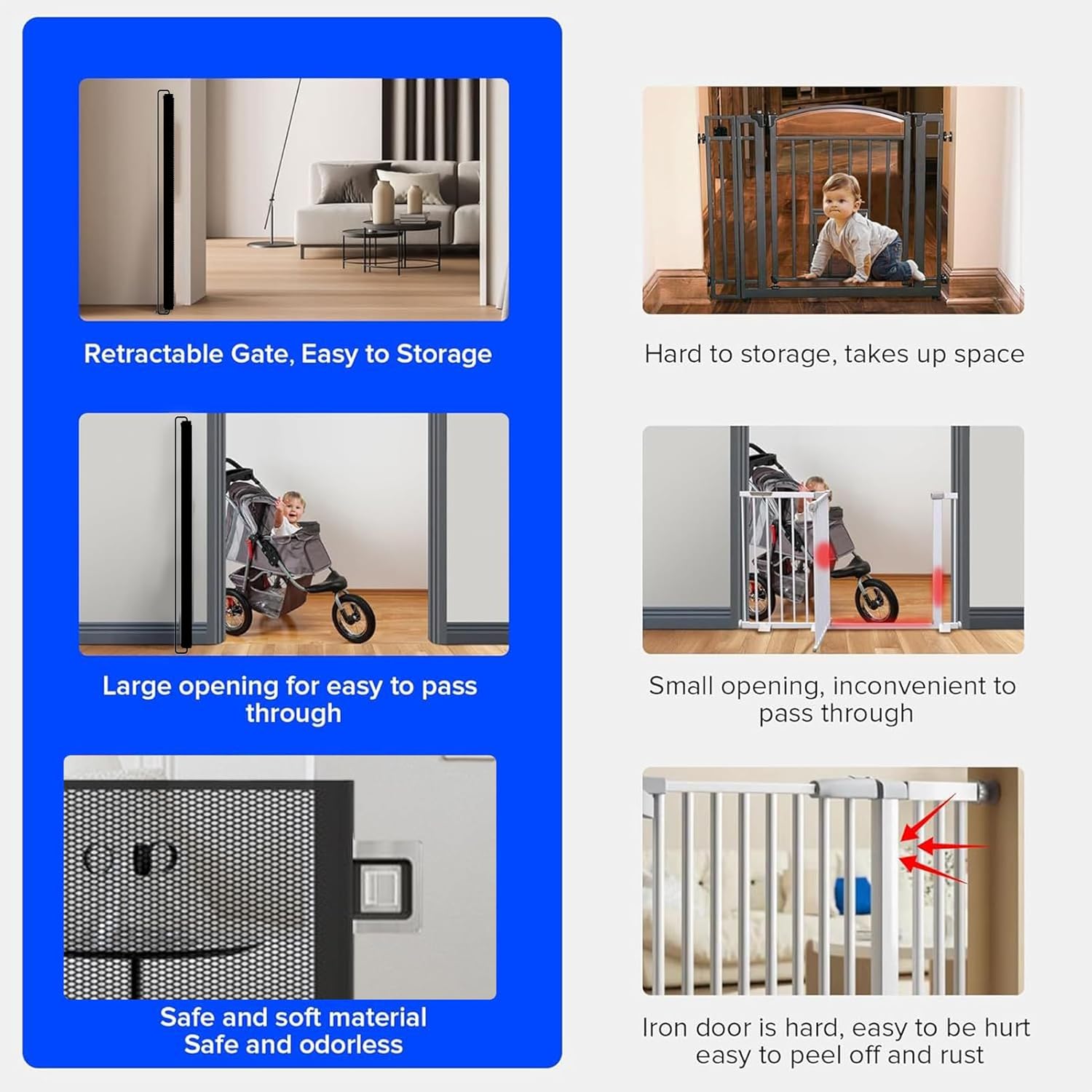 The Portable Puppy Safety Fence Guard ensures safety for pets in various environments with its retractable and adjustable design. This multifunctional pet fence is easy to set up with no punching required, making it convenient for indoor and outdoor use. Ideal for kitchens, hallways, courtyards, balconies, terraces, and porches, this pet guard provides versatile protection. Crafted to suit multiple settings, it enhances the security of your pet while maintaining ease of installation and portability. The pet safety fence adapts seamlessly to different spaces, ensuring reliable performance wherever needed.SpecificationProduct material: mesh fabricProduct size:A: about 110x95cm/43.31x37.4 inchesB: about 150x95cm/59.06x37.4 inchesC: about 180x95cm/70.87x37.4 inchesPacking List:1* Mesh Dog GateNote:Due to different lighting and screen settings, the item color may be slightly different from the picture.Due to different manual measurements, please allow a 1-2cm difference in size.