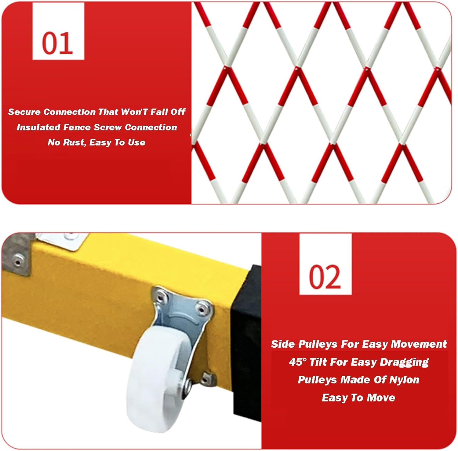 Introducing our versatile retractable safety barrier, designed to effectively manage pedestrian traffic and enhance safety in a variety of environments such as construction sites, traffic blockades, elevator constructions, garage doors, and restaurant partitions. **Key Features:** 1. **Durable Construction:** Built to withstand harsh conditions, this barrier frame is coated to support loads exceeding 100 kg. Its weighted rubber base ensures stability against wind and tipping, making it perfect for outdoor use in temperatures ranging from -30 °C to 60 °C. 2. **Portability:** This outdoor retractable fence can be quickly folded for convenient storage and deployment. The mobile gate can be installed in a flash with just a few screws, making it an excellent choice for maintenance tasks, crowd control, and traffic management. 3. **Easy Installation:** Most components are pre-assembled, allowing you to easily connect the two halves and secure the base. All necessary connection hardware is included, ensuring a hassle-free setup. **Specifins:** - Product Name: Traffic Retractable Barrier / Folding Safety Gate - Material: Fiberglass + Steel Frame - Color: Red - Tube Diameter: 2.5 cm - Height: 120 cm - Length Options: 250 cm (8.2 ft), 300 cm (9.8 ft), 400 cm (13.1 ft), 500 cm (16.4 ft), 600 cm (19.6 ft) \u2013 customizable **Functionality:** Ideal for warning, isolation, and establishing secure zones. **Package Includes:** 1 x Traffic Retractable Barrier For any inquiries about this product, please feel free to reach out to us. **Note:** 1. Manual measurements may have discrepancies of 1-2 cm; please refer to the actual product for accuracy. 2. Recording resolution may vary slightly from the screen; check the actual product for precision. 3. Only the traffic retractable barrier is included; other products are for reference only. Elevate safety and control with our reliable retractable barrier, tailored for your needs.