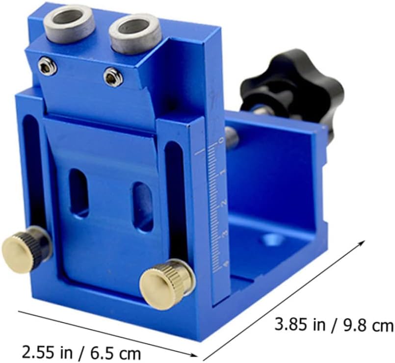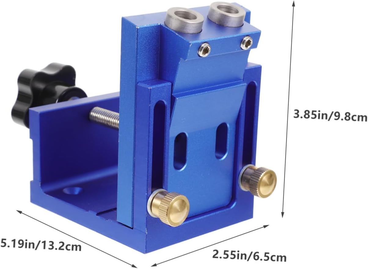 Package List 1 x locator 10 x plugs 1 x drill bit 1 x bit 1 x wrench x screws Features Clamping range: 1-38mm -Material:Aluminum alloy angle - Color: Blue, Random Color Accessory power tool accessory jigs Applicable plug diameter: 9mm dowel kit - Size: 13.20X9.80X6.50cm/5.19X3.85X2.55in portable - The positioning fixture has a larger chip removal capacity, faster and smoother chip removal, faster and less labor-saving drilling wood working tools. - Drilling locator guide rail with quick clamp, fast and firm clamping, drilling efficiency pocket screw. - Drilling guide rail, with clear and precise scale, can be adjusted to a suitable position according to the thickness of the wood, and accurately aligned, suitable for wood thickness 12-38mm carpentry tools and accessories. - Made of aluminum alloy, anti- , wear- and strong, small and light, used for splicing furniture and wood boards pocket. - The extended drill sleeve of the woodworking fixture makes the punching accurate, the 15-degree inclined hole, the splicing is more firm, and the applicable plug diameter is 9mm drill.Goods Informationpocket hole kit Fine workmanship, ensures practicality.wood working tools Features the aluminum alloy material, which has high durability, to deform.carpentry tools and accessories This pocket hole set is made of , which can withstand long-lasting use