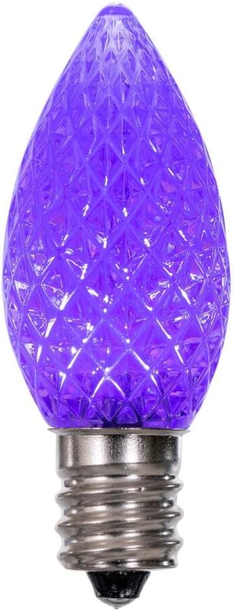 Vickerman C7 LED Purple Faceted Twinkle Replacement Bulb. Features: E12 Nickel Base, 120 Volt, .96 Watts, Dimmable, package of 25 bulbs.