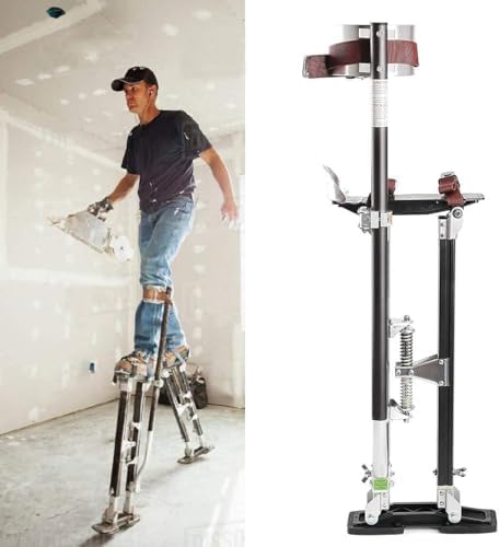 Are you tired of constantly moving a ladder while painting or taping? Our Aluminum Adjustable Drywall Stilts are designed to enhance your efficiency and comfort on the job. With a height adjustment range of 18" to 30", these stilts provide the flexibility you need for various tasks, allowing you to reach high areas without the hassle of a traditional ladder. Crafted from durable aluminum alloy, these drywall stilts are lightweight yet sturdy, supporting a load capacity of up to 225 lbs. The innovative heel bracket accommodates different foot sizes, ensuring a secure fit and preventing slippage in any direction. Safety is paramount; that's why our stilts feature adjustable leg straps with metal buckles, providing additional support for worry-free movement. The skid-proof rubber soles not only offer excellent traction but also protect your floors from scratches, making them ideal for both professional painters and DIY enthusiasts. Whether you’re working on ceilings, walls, or intricate detailing, our stilts allow for stable and controlled movement, enhancing your productivity on every project. In the package, you will find one pair of drywall stilts and a comprehensive manual to get you started. Please note that slight color variations may occur due to monitor settings, and allow for minor measurement deviations due to manual measuring. Upgrade your painting and taping experience with our Adjustable Drywall Stilts and say goodbye to the inconvenience of ladders!