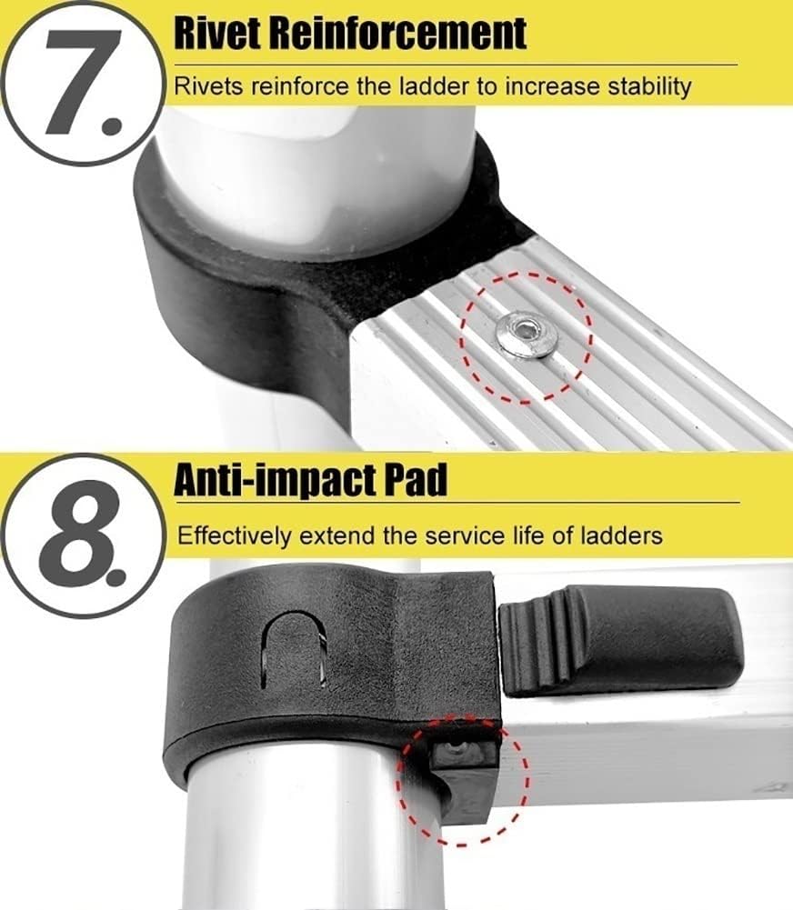 - This is our new multi-purpose folding ladder. Our ladders are lightweight, portable and suitable for a a variety of domestic and commercial uses. Using such kind of tools have already very popular in DIY projects, tradesmen, whatever garden or workshop. - SpecificationMaterial: Aluminium alloyUnfolded size: (Optional) 2./7.5ft , 2.7m/8.8ft , 3.5m/11.5ft , 3.9m/12.7ft , 4./14ft , 4.7m/15.5ft , 5.1m/16.7ft , 5.5m/18ft , 5.9m/19ft , 6./20.5ft , 6.7m/22ft , 7.1m/23ft , 8.1m/26ftMaximum user weight: 150kg/ 330lb- Most liked features:For both individual and professional useDurable, and rustproof it's well worth the money - Technical features:Save space:Easily fits into cupboards, the back of a van or the boot of a car. Lightweight and easily portable .This practical and reliable ladder will prove worth its weight in gold when tackling a variety of tasks in and outside the home; no more struggling with awkwardly long extension ladders.Great for loft access, window cleaning, gutter cleaning, interior and exterior painting, general decorating, accessing cupboards, maintenance tasks and more!Thanks to the ladder's extendable design, you can safely get into smaller confined spaces which a larger ladder wouldn't allow.- Please Note: Do not place your hands or fingers between the rung when closing the ladder.- Package contents:1 x Telescopic ladder★ Note:1. Because of the manual measurement 1-3cm size error, take physical size must prevail.2. There is a slight difference between the image and the actual element caused by the brightness.3. Incorrect maintenance mode will seriously affect the appearance of the product and the useful life.4. If you have any further questions about our Ladder , please contact us first. We are happy to help you. I hope you have a wonderful life.