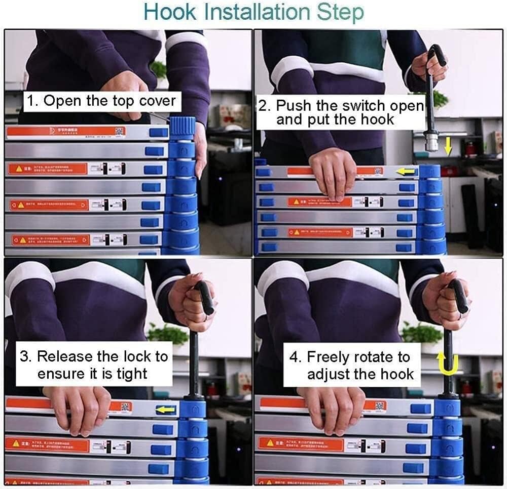 Package Contents: 1 Xladder.Specification:Material: Premium Aluminum AlloyFully Extended High: 2.0M/6.56Ft, 2.6M/8.53Ft, 2.95M/9.68Ft, 3.25M/10.66Ft, 3.85M/12.63Ft, 4.15M/13.62Ft, 4.45M/14.60Ft, 4.85M/15.91Ft, 5.25M/17.22Ft, 5.75M/18.86Ft, 6.15M/20.18Ft.Fully Shrink High: 0.67M, 0.73M, 0.81M, 0.84M, 0.90M, 0.93M, 0.96M, 0.97M,1.0M,1.03M, 1.06M.Color: Blue.Max,Load: 150 Kg,330Lbs.Feature:the Top Reinforcement Hook Makes the Ladder More Stable and Secure Without ShakingNo-Slip Steps and Rubber Feet Fitted to Protect Internal Flooand Also Give Maximum Safety.Great Helper for Both Indoor Household Use and Outdoor Activities.Foldable, Convenient to Store and Easy to Carry Around.Anodized Aluminum Finish - Clean to Touch.Easy-Carryibase Handle.Easy Extension and Retraction.Notice:Do Not Put Your Fingers on or between the Rungs While the Ladder is Retracting.It Doesn'T Matter If It Smells, Just Leave It Alunder Ventilated Place.Due to Different Batches and Manual Measurement, There May Be Slight Error, Thank You for Your Understanding.All the above Pictures Are Displayed, and the Different Display Effects May Be Different,Please Refer to the Actual Product.