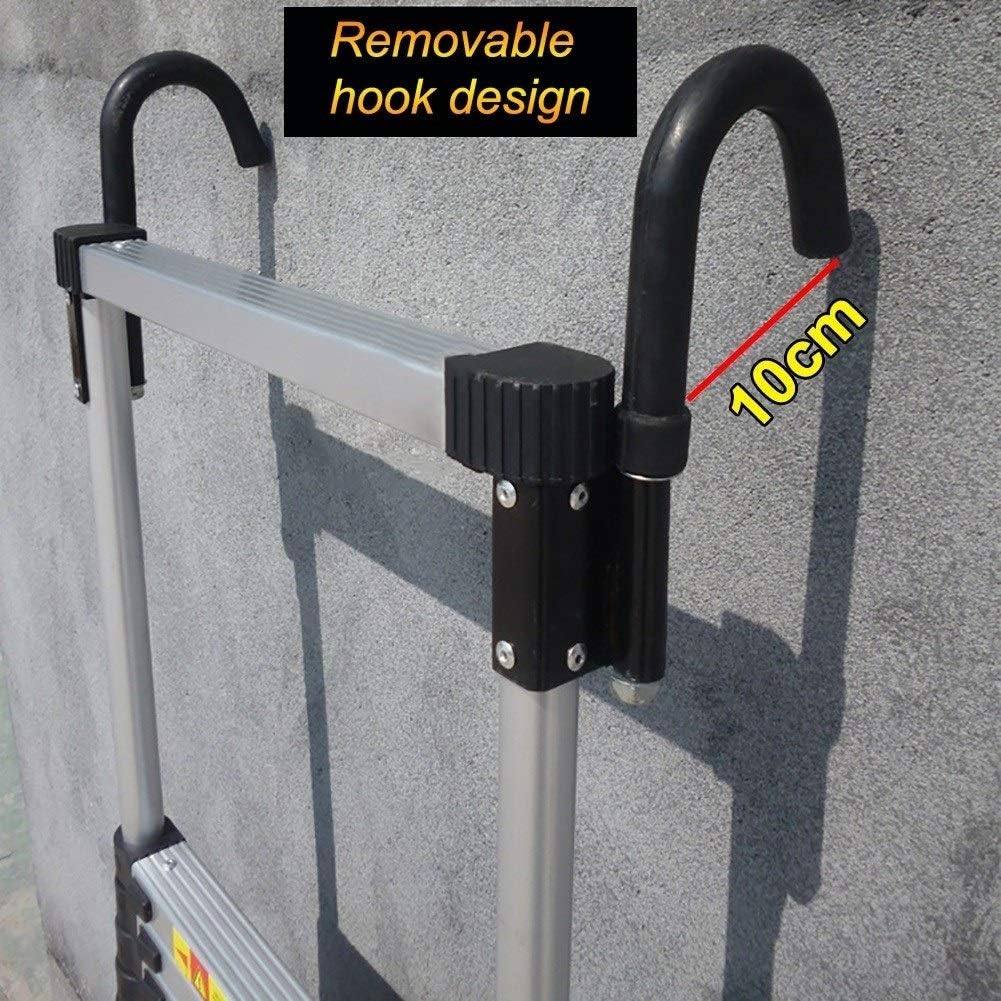 High Quality: Made of corrosion resistance aluminum alloy, light weight and durable. Maximum load 150kg, it enough sturdy to wouldn't bend terribly in the middle, and you find it very stable and safety when you use this ladder.; Easy Operate: Separate locking buttons on each step allow user to adjust the ladder to specific height to fit different requirements.; Safety and Anti-slip: Each rung's shallow have non-slip strip which provide additional safety, you can step with confidence that you won't slip at all. Non-slip end caps on the feet can avoid tipping over.; Widely Application: Ideal for loft entry, garden work, builder supplies, roof works, washing windows doing painting. Lightweight and compact size, handy for transporting around in your car boot and store.