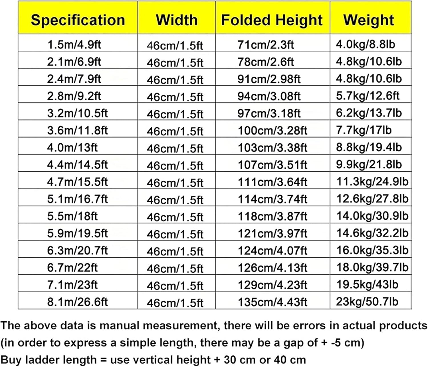 Ladders,8M/7M/6M/5M/4M/3M/2M/1.2M Extra Tallcopiladder with Stabilizer Bar and Detachable Hook, Extendableladder for Roof Home Outdoor Work, Load 150Kg/1.5M/4.9Ft