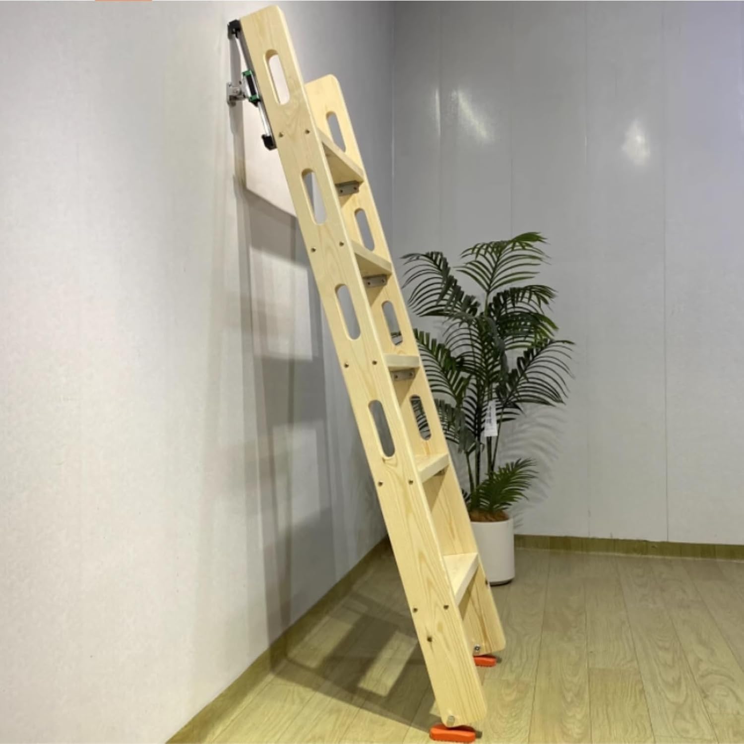 The treads of the attic ladder are designed with human balance in mind, featuring soft, non-slip edges. Even in limited spaces, it allows for effortless ascent and descent, transforming high-altitude climbing into an elegant experience. It doesn't occupy valuable floor space, yet creates a completely new dimension of access.Specifications:- Material: Solid wood- Colors: White, Black, Natural- Available Lengths: 1.05m (3.4ft), 1.31m (4.3ft), 1.56m (5.1ft), 1.82m (6.0ft), 2.08m (6.8ft), 2.34m (7.7ft), 2.6m (8.5ft)- Available Steps: 3, 4, 5, 6, 7, 8- Width: 46cm (18.1in)- Step Depth: 9.5cm (3 3/4in)Package Included:- 1 x Loft Ladder(Installation hardware included)Features:- Made of solid wood for durability.- Load capacity: 150kg/330lbs.- Stable and non-slip, resists tipping.- Equipped with rails for easy storage.- Comes with non-slip rubber feet.- Suitable for various occasions.Notes:- Please measure the height from the ground to the second floor before purchasing and choose the appropriate size based on your height!- Due to differences in monitors and lighting, there may be slight color differences between the image and the product.- Due to manual measurement, there may be an error of 1-2 cm. The actual size is subject to change.When closed, the attic ladder blends seamlessly with the ceiling, becoming a natural extension of the architectural lines; when unfolded, it reveals exquisite mechanical aesthetics, where practicality itself becomes a beautiful sight. The presence of the attic ladder makes dusty memories, seasonal items, or cherished dreams easily accessible.