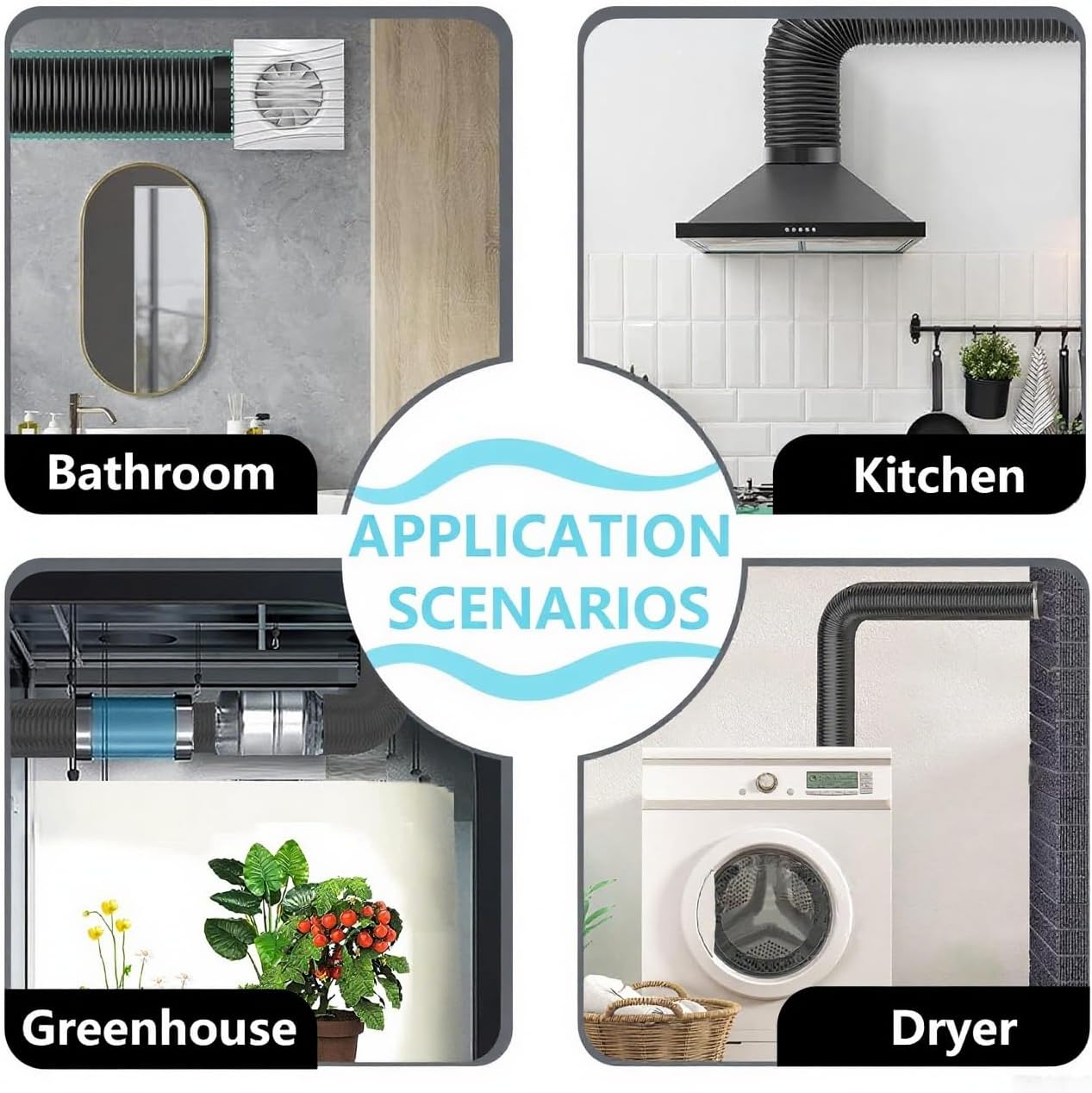 • Wide range of uses: Dryer exhaust hose is suitable for HVAC systems. It will move and deliver air in kitchens, greenhouses and grow rooms, bathrooms, drying rooms, grow tents and other applications