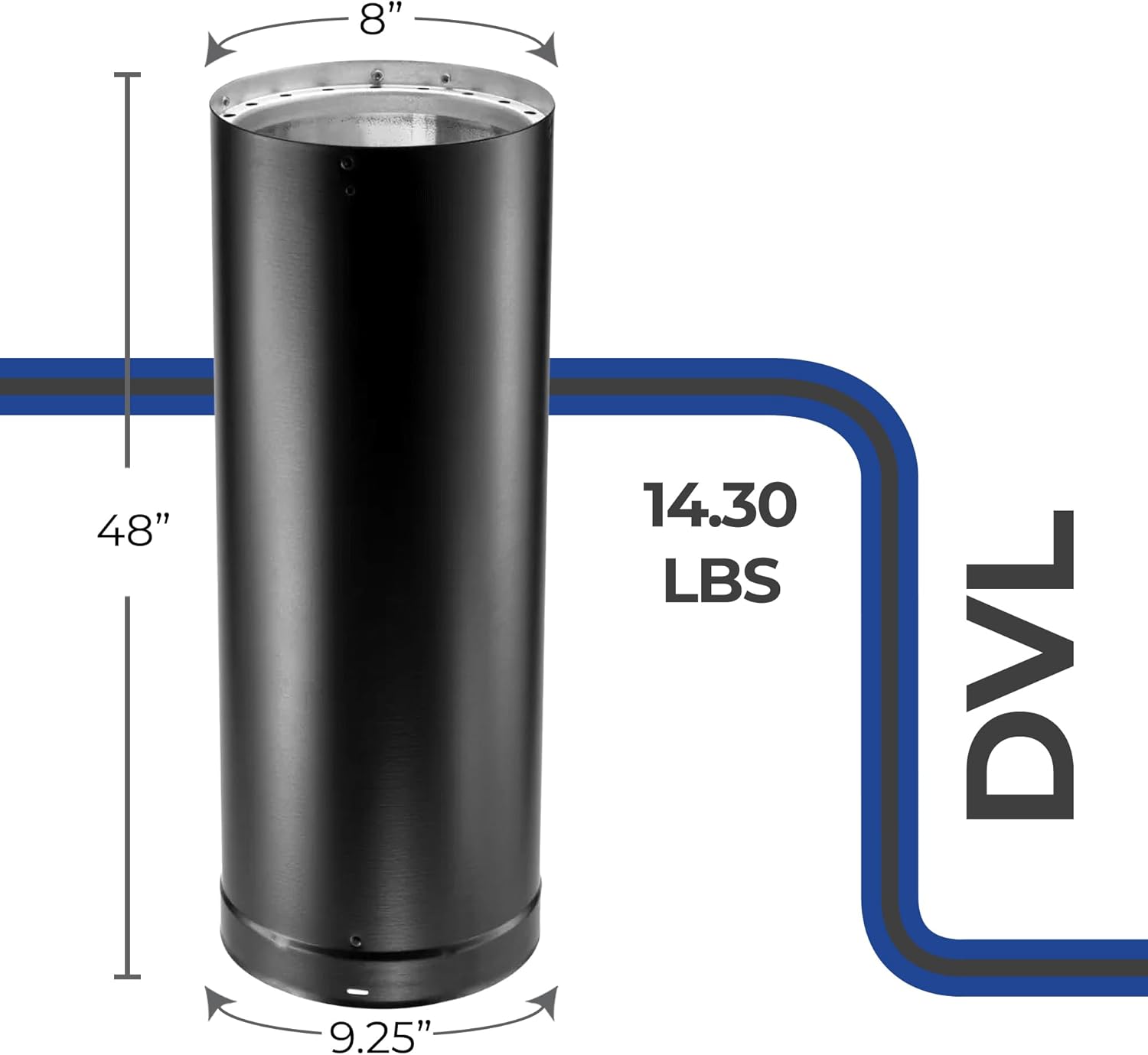Item Type Name M&G DuraVent 8DVL-48 8" Inner Diameter - DVL Stove Pipe - Double Wall - 48" Pipe Len, Black