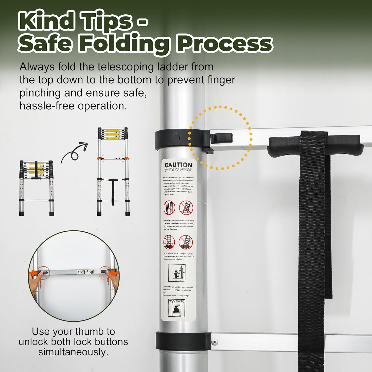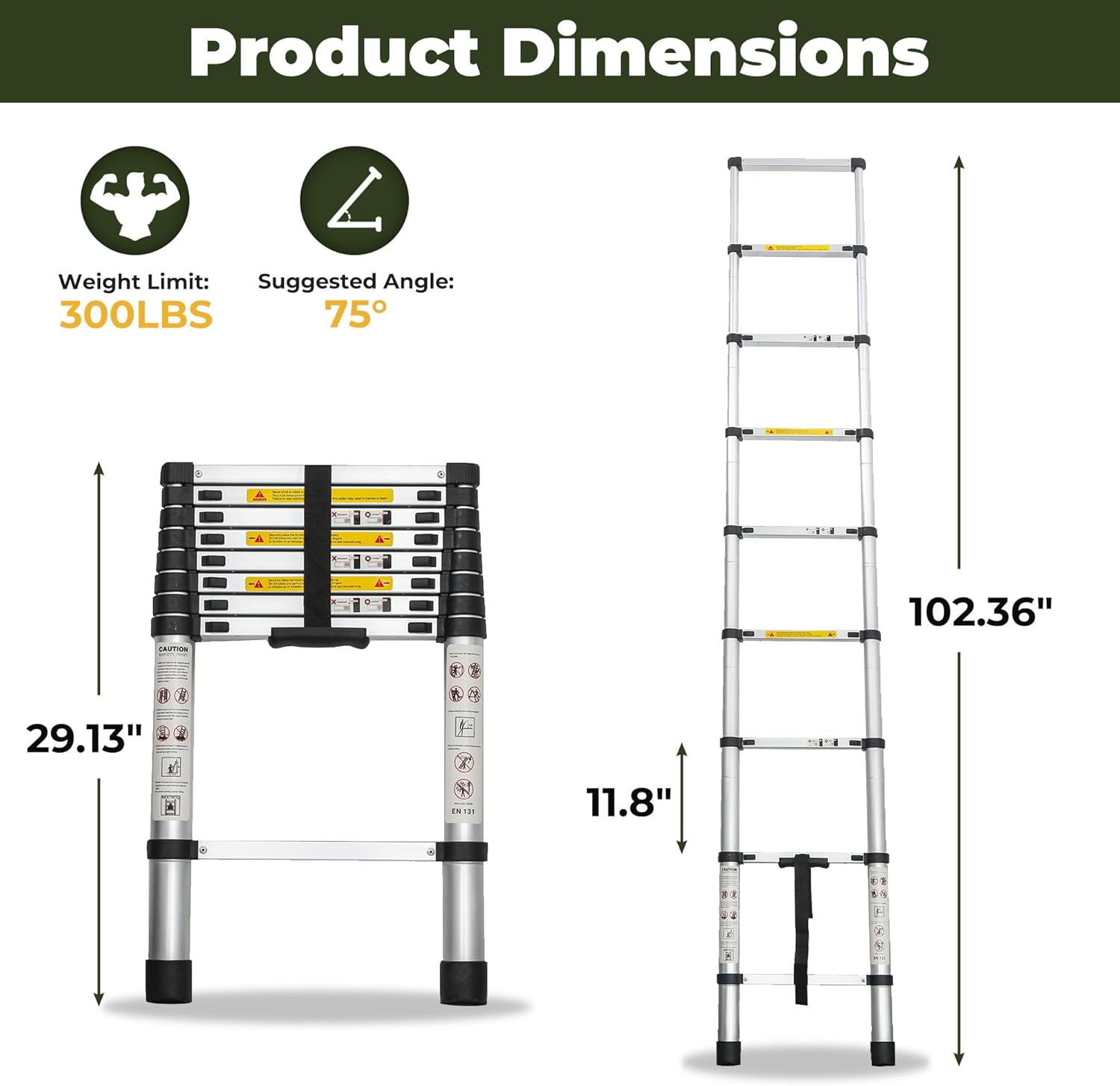 NicBex 8.5FT Telescoping Ladder Aluminum Alloy Folding Ladder Portable Telescopic Extension Ladder 8.5FT Multi-Purpose Telescopic Ladder for RV or Indoor Outdoor Work, Heavy Duty 300 lbs Load, Black