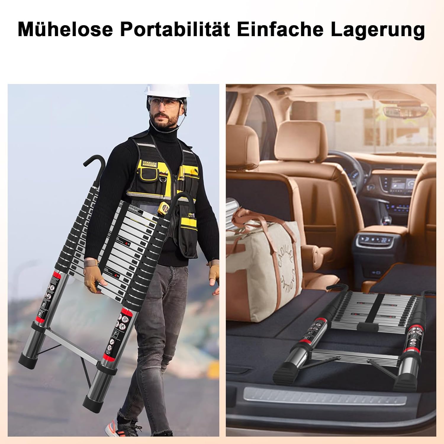 Telescopic Ladder, Extendable Ladder, Durable, Compressible Ladder, Flat Ladder, Max Load 150 kg (330 LBS) for Outdoor, Attic. Foldable telescopic ladder. Description: This telescopic ladder is made of heavy-duty stainless steel. Compared to aluminium ladders, it is more stable, has a higher load capacity and is more durable, wear-resistant and has a longer service life. Anti-slip end caps for added stability and safety. Ideal for home repairs, decorations, murals, roof climbing, attic access, tree trimming, gutter/window cleaning or as a RV ladder. Telescopic ladder 4.4 m. Specification: 4.4 m telescopic ladder with 2 hooks. Number of ladder steps: 14 rungs. Material: stainless steel. Colour: silver. Height of the crotch: 30 cm. Folded height: 93 cm. Unfolded height: 440 cm. Maximum load: 150 kg. GW: 13.8 kg. Package includes: 1 x telescopic ladder. 1 x user manual (English language not Warning: 1) Make sure each section is fully extended. 2) Carefully check that each locking pin is locked correctly. 3) Make sure the ladder joint is locked before use.