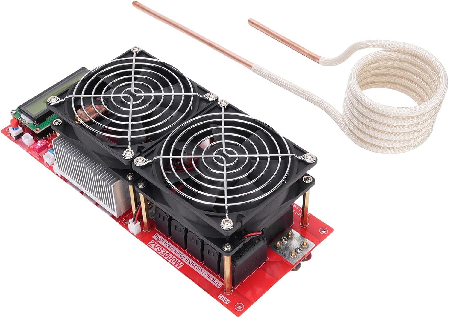 Hyuduo 3000W ZVS Induction Heating Module DC 24-65V | PCB Board with Copper Tube & Heat Sinks for Metal Heating, 270x105x100mm