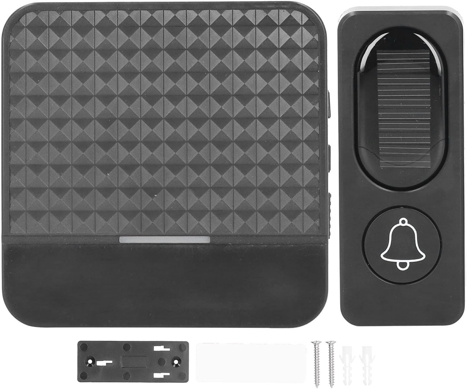 [Flexible Pairing System] This doorbell supports free pairing, allowing one transmitter to connect with multiple receivers or one receiver to link with multiple transmitters. the easy 6-second pairing process ensures seamless setup for expanded coverage. [Durable & Versatile Design] Built with abs material and an ip65 rating, this doorbell withstands harsh weather conditions. its compact size (90x35x15mm) and black finish make it ideal for homes, offices, and hotels, offering both functionality and style. [52 Music Options & Clear Sound] Enjoy a personalized doorbell experience with 52 melody choices and crystal-clear sound quality. the volume is adjustable across four levels (20-80db), ensuring timely reminders whether you’re indoors or in a noisy environment. [Strong Signal & ] This wireless doorbell alarm system features robust penetrating power and stable long-distance signal transmission up to 300 meters in open space. with low interference and reliable performance, it ensures you never miss a visitor at your home, office, or hotel. [Solar Powered & Eco-friendly] Harnessing the power of the sun, this doorbell is equipped with a 100mah lithium polymer battery and a 5.5v solar panel. it’s , radiation-free, and safe for outdoor installation, making it a sustainable choice for your security needs. Spec: Condition: 100% Brand New Item Type: Door Bell Material: ABS Weight: Approx. 187g / 6.6oz Receiver Standby Current: 10mA Receiver Working Current: 60ma Receiver Frequency: 433MHz Receiver Power: ≤2w Receiver Adjustable Volume: 20-80db (Fourth Cycle Adjustment) Transmitter Solar Battery: 100Mah Lithium Polymer Battery Transmitter Solar Panel Maximum Power: 5.5V 25mA 0.13W Transmitter Working Current: 12mA Transmitter Working Range: About 200-300m / 656.2-984.3ft (Open Space) Transmitter Rating: IP65 Music: 52 Types Color: Black Transmitter Size: Approx. 90x35x15mm /