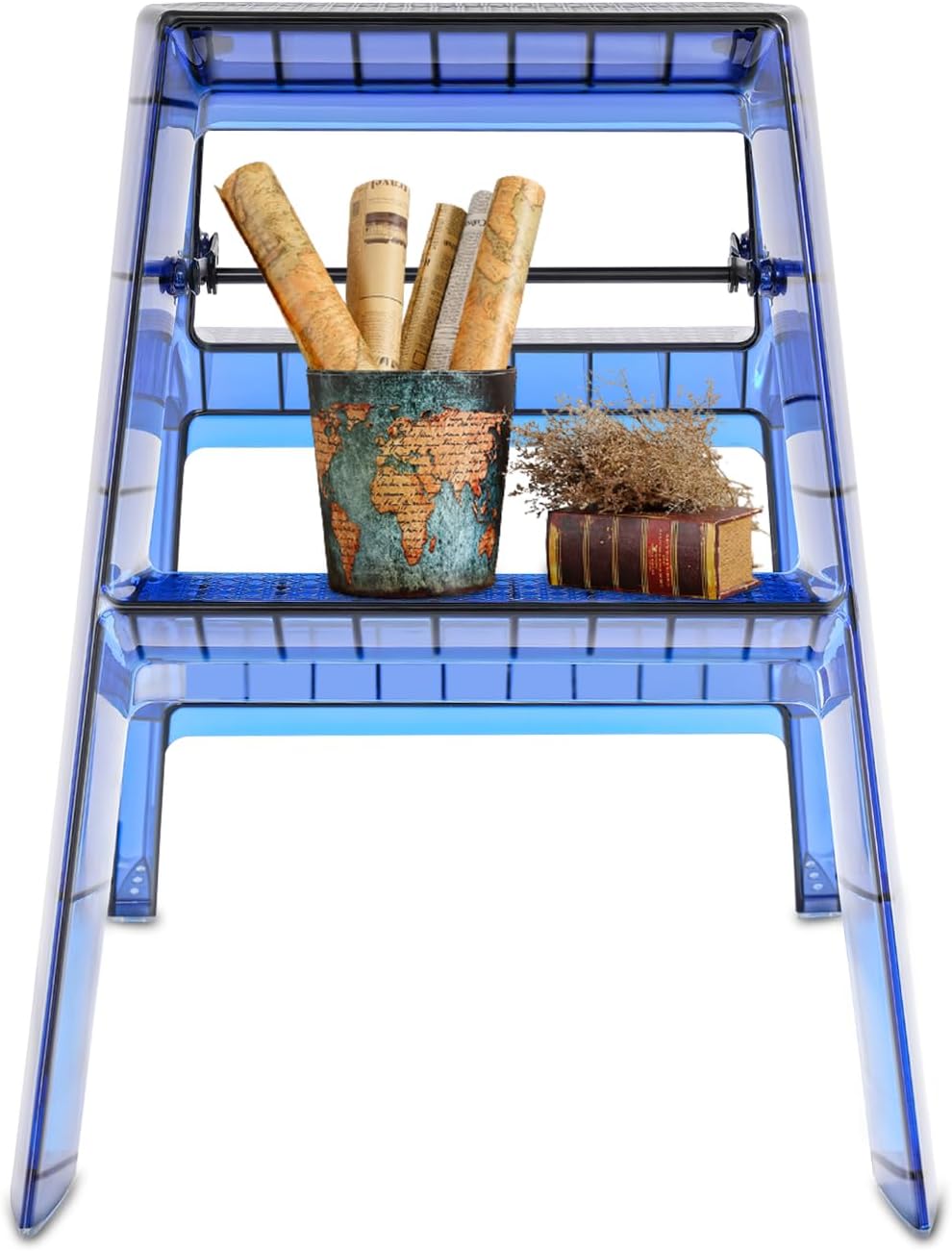 This 3-step foldable ladder breaks through the traditional design and is made of premium material with a semi-transparent texture. It takes up little space, is easy to fold and store, and provides stable support when unfolded. It is not merely a tool but also a creative item that enhances the quality of life. Come and buy it now!Ready to Use: It does not need assembly, so you can directly use it after receiving and cleaning it, greatly saving time and effort. DetailsTriangular Structure: The triangular-like design distributes weight evenly and provides excellent stability. Non-slip Surface: This texture increases friction, allowing you to climb and stand on the ladder with confidence and stability.ApplicationIt can be used as a ladder, dining stool, shelf, or high stool. You can put it in the bathroom to store your toiletries, and it can also be used in the living room, bedroom, balcony, and other places to store magazines, alarm clocks, and flowers. It can also be used as a shooting prop. It can also be used as a seat for occasional rest.SpecificationMaterial: PCProcess: Glossy Style: ModernAssembly Required: NoMounting Type: Free StandingType: Bilateral LadderLoad-bearing Capacity: 150kg/330 lbsProduct Size: 60.8*49.3*60.7 cm/24*19.4*23.9 inPackage Size: 72.5*52.5*23 cm/28.54*20.67*9.06 inGross Weight: 6.7 kg/14.77 lbsNet Weight: 6.37 kg/14.04 lbsPackage Included 1* 3-step Foldable LadderNotes1.Please check the product size carefully before purchasing.2. It is only suitable for light homework, not for industrial use. Please use the product within its load-bearing capacity range.3.Please allow the slight color difference caused by the shooting light and 1-3cm error due to manual measurement, and make sure you do not mind before ordering.