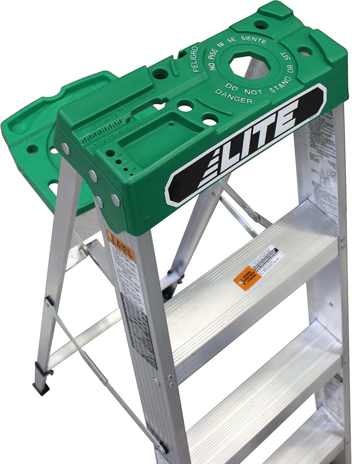 Discover the ultimate combination of lightweight design and unmatched durability with the LITE 6-Foot Step Ladder with Tool Tray. Weighing just 13 pounds, this step ladder is remarkably easy to transport and maneuver without sacrificing strength. Engineered with a sturdy 225-pound capacity, sleek design, and smooth finish, it's the epitome of reliability for your projects. Enjoy exceptional convenience with the integrated molded pail featuring tool slots and a drill slot, securely accommodating various tools and paint cans. Experience ultimate stability with slip-resistant rubber feet and aluminum angle feet featuring thick rubber tread on all four legs, ensuring secure footing on any surface. Tailored to meet your needs, this 6-foot step ladder with tool platform features a molded top with a recessed, non-conductive tray, providing a safe and practical solution for a wide range of tasks. Elevate your work experience with the Louisville Ladder 6-Foot Step Ladder with Tool Tray, where lightweight construction meets uncompromising strength and functionality.