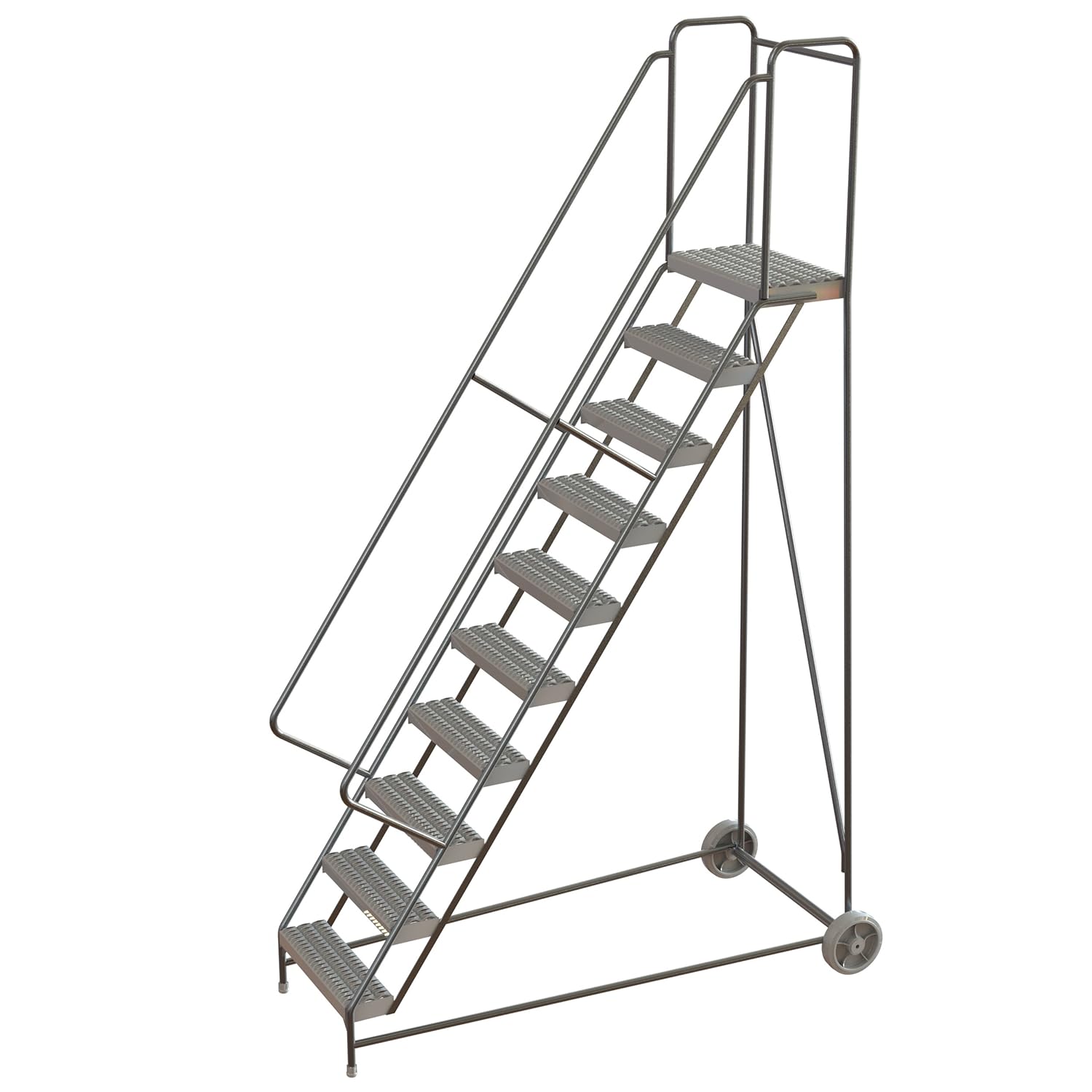 Tri-Arc's Aluminum Wheelbarrow-Style ladders are the perfect choice for use in environments including wash-down, food and pharmaceutical processing and where there are rough floor surfaces. Lightweight lift-and-roll design with 10" wheels for easy portability. 14" Deep top platform permits free range of motion while working from the ladder. Serrated tread provides excellent slip-resistance and self-cleaning properties.