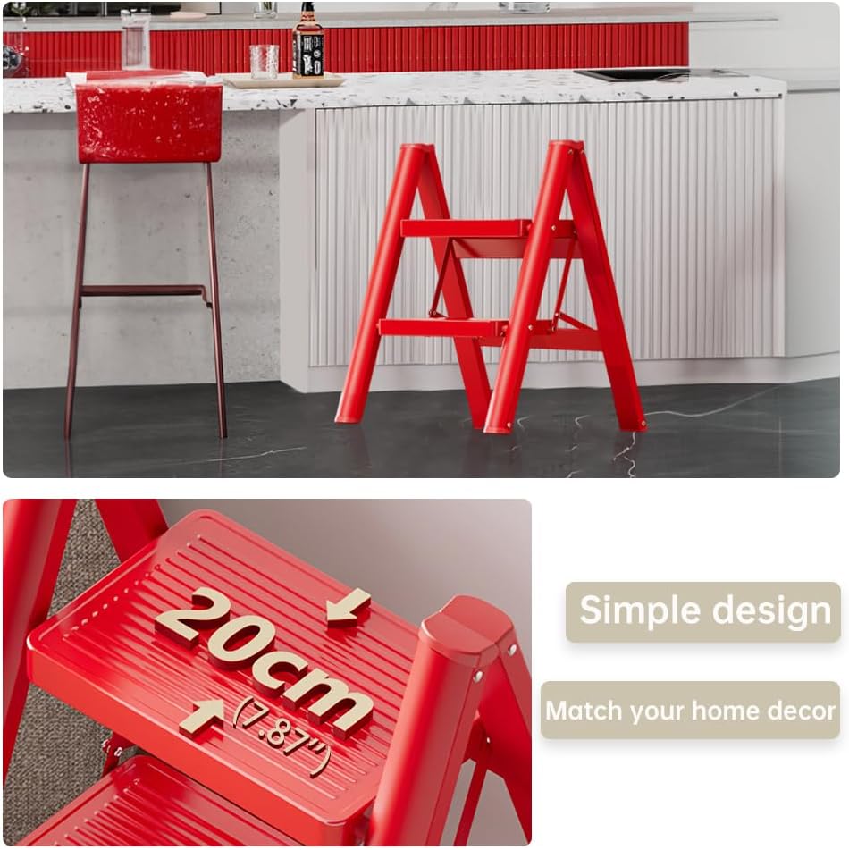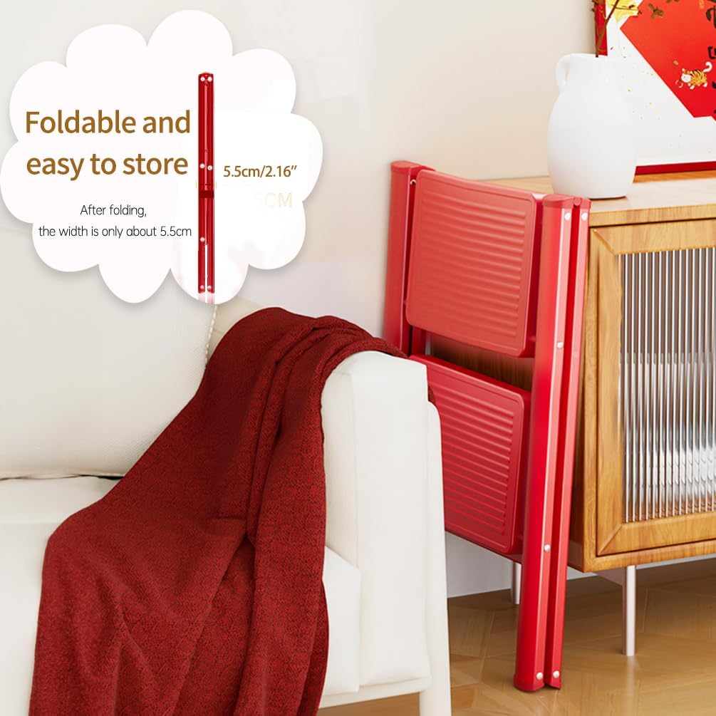 Material: Carbon Steel Color: Black / White / Red Dimensions Approx.: 2-Step Ladder----Expand Size: 42 X 49 X 59cm/ 16.53'' X 19.3'' X 23.2'' (L X W X H); Foldable Size: 42 X 5.5 X 64cm/ 16.53'' X 2.16'' X 25.2'' (L X W X H); Wide Pedal: 30 X 20cm/ 11.81'' X 7.87'' (L X W); Maximum load: 150kg/ 330lbs 3-Step Ladder----Expand Size: 42 X 66 X 84cm/ 16.53'' X 25.98'' X 33.07'' (L X W X H); Foldable Size: 42 X 6 X 90cm/ 16.53'' X 2.36'' X 35.43'' (L X W X H); Wide Pedal: 30 X 20cm/ 11.81'' X 7.87'' (L X W); Maximum load: 150kg/ 330lbs 4-Step Ladder----Expand Size: 42 X 84 X 108cm/ 16.53'' X 33.07'' X 42.51'' (L X W X H); Foldable Size: 42 X 6 X 116cm/ 16.53'' X 2.36'' X 45.66'' (L X W X H); Wide Pedal: 30 X 20cm/ 11.81'' X 7.87'' (L X W); Maximum load: 150kg/ 330lbs Package Included: 1 x Step Ladder