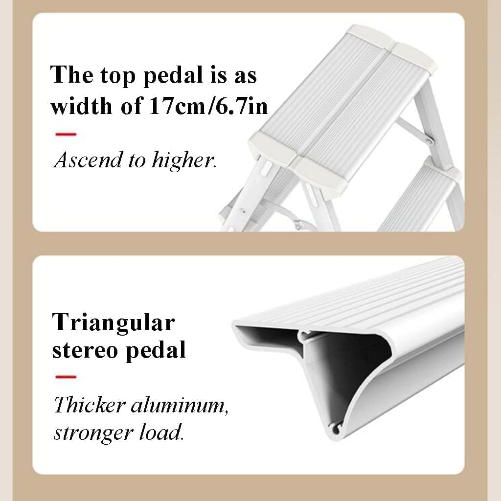 Easy Storage with Compact Design: The step ladder can be folded, quite portable & space-saving for storage. It's portable in your car trunk, or can be carried everywhere. Compact enough to slide under a bed, stash in a closet / behind a door, or simply lean against a wall.Ladder Type: Folding Ladder/Step Ladders Product material: aluminum alloyProduct size: 3-step stool ladder (development height: 71cm/28inch, net weight: 2.5kg/5.51lb); 4-step stool ladder (development height: 96.5cm/38inch, net weight: 3kg/6.61lb)Product load: 150kg/330lbInsulation: non -insulationLadder Type: Folding bilateral ladder/human character ladderObtain: Ladders × 1 (excluding any products)Wide Application:This ladder is a must-have for cleaning, painting, decorating, and all your DIY projects, it allows you to effortlessly reach those hard-to-access areas, perfect for home offices and both indoor and outdoor use, it takes the hassle out of your DIY or cleaning tasks, with this ladder, you can easily complete your projects.