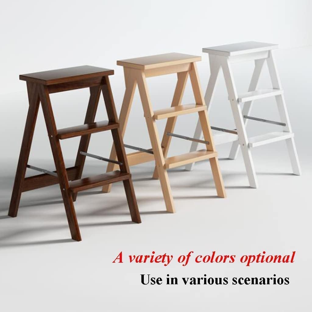 Easy Storage with Compact Design: The step ladder can be folded, quite portable & space-saving for storage. It's portable in your car trunk, or can be carried everywhere. Compact enough to slide under a bed, stash in a closet / behind a door, or simply lean against a wall.Ladder Type:Telescoping Ladders/Folding Ladder/Step Ladders Product material: woodProduct development size: 42x48x64cm/46.5x18.9x25.2inFolding size: 42x20x68cm/16.5x7.9x26.8inAbout weight: 5kg/11lbProduct load: 150kg/330lbStep type: ladder stoolWide Range:for home, attic, RV, outdoor work, building maintenance, window cleaning, decoration workPackage Included:1 x Ladder (excluding any products)Product features: 1. The board is thick and the hardware link is stable. 2. The triangular support design enhances the stability and makes the use more secure. 3. The locking hinge ensures the reliability of the fuselage.Wide Application:This ladder is a must-have for cleaning, painting, decorating, and all your DIY projects, it allows you to effortlessly reach those hard-to-access areas, perfect for home offices and both indoor and outdoor use, it takes the hassle out of your DIY or cleaning tasks, with this ladder, you can easily complete your projects.