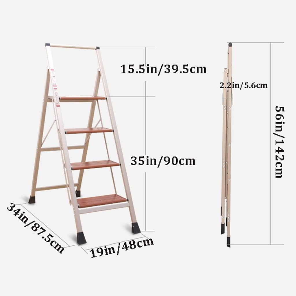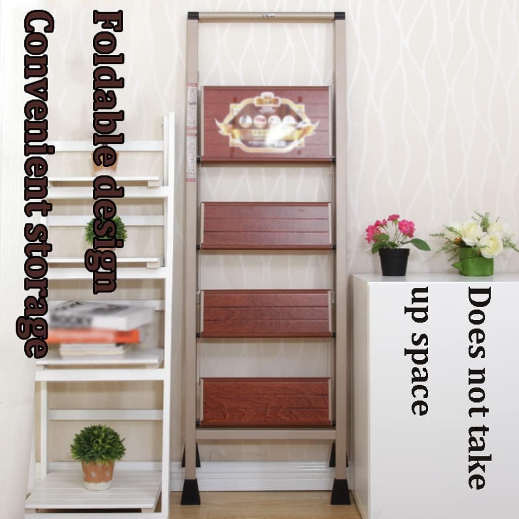 Easy Storage with Compact Design: The step ladder can be folded, quite portable & space-saving for storage. It's portable in your car trunk, or can be carried everywhere. Compact enough to slide under a bed, stash in a closet / behind a door, or simply lean against a wall.Ladder Type:Telescoping Ladders/Folding Ladder/Step Ladders Material:Aluminum and WoodColor:BrownSize:unfolded size 34in/87.5 length, 19in/48cm width, 51IN/130CM height. The dimensions of the telescopic finger are about 2.2in/5.6cm thickness, 19in/48cm width and 56in/142cm height.Load capacity:150KG/330LBWide Range:for home, attic, RV, outdoor work, building maintenance, window cleaning, decoration workPackage Included:1 x Ladder (excluding any products)Features: 1. The bottom of the solid wood pedal is grooved, which is not easy to slip. 2. Double rivet double reinforcement. 3. Increase the friction of the ladder feet to make it more stable.Product features:Wide Application:This ladder is a must-have for cleaning, painting, decorating, and all your DIY projects, it allows you to effortlessly reach those hard-to-access areas, perfect for home offices and both indoor and outdoor use, it takes the hassle out of your DIY or cleaning tasks, with this ladder, you can easily complete your projects.
