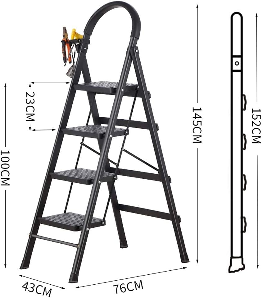 Easily store this step ladder by quickly folding it up where it is slim enough to fit next to the refrigerator, behind doors and in small places, taking up very little room. Please note each step ladder has a maximum load of 150 kg. Specification: Material: Steel Use environment: home, office, etc. Number of Ladder Step: 3 step , 4 step Max Load Capacity: 150kg. Box Contains 1 x Step Ladder Note: Slight deviation may occur during measurement, please take care and thanks for your understanding. This package contains only the product and does not contain any decorative items involving pictures. We will try our best to solve your problem. Please give us a chance to solve any problems you may encounter.
