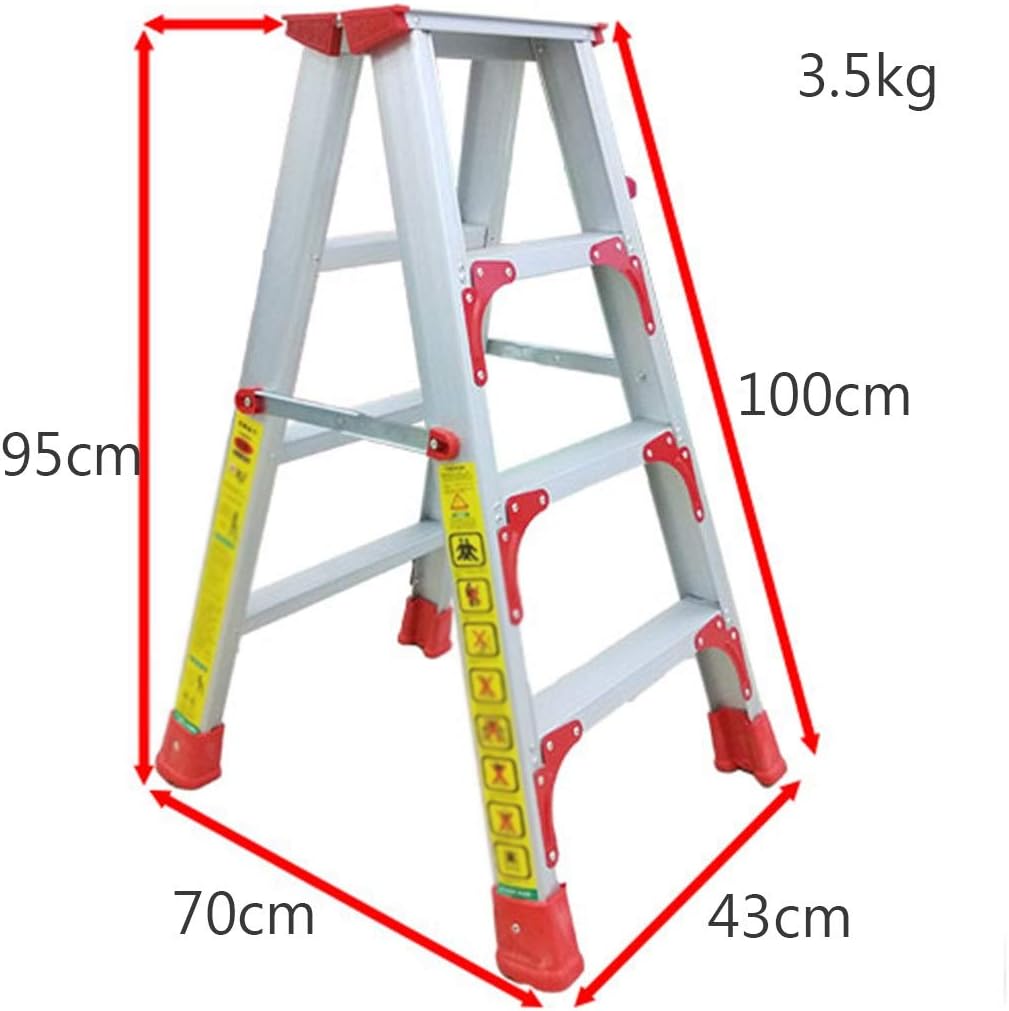 Beautiful and Practical Ladder, Not Only Stable and Safe, But Also Suitable for Various ScenesProduct Details:Material: Aluminum AlloyInsulation: Non-InsulationLoad Capacity: 150 KgNumber of Pedals:Four-Step Ladder, Five-Step LadderLadder Type: Double Side Ladder————————————————Four-Step Ladder:Expanded Size: 43*70*95 cm , 44*80*115 cm————————————————Five-Step Ladder:Expanded Size: 48*100*145 cm————————————————Product Features:[Characteristics] Foldable Design for Easy Storage.[Characteristics] Designed with Safety As the Primary Factor, Making Ascending Safer.[Characteristics] Triangular Principle Design is More Stable and Safer.[Characteristics] Non-Slip Foot Pad Design, Safe and Reliable.[Characteristics] Non-Slip Pedals for Greater Safety.————————————————Warm Tip:Tip: This Product Only Sells Ladders and Does Not Contain Any Decorations.Tip: All Products Are Taken in Kind. Due to the Problems of Light and Angle, Some Products Have Color Difference. Please Understand!Tip: the Product is Manually Measured. Due to Different Measurement Tools, Some Products Have 1~3Cm Error, Please Understand!Tip: If You Encounter Problems Dupurchase, Transportation or Use, Please Contact Us by Email. We Will Help You with Your Answers.Purchase According to Your Personal Situation at the Time of Purchase, Our Store Has a Variety of Goods, I Hope You Can Patiently Browse and Purchase.