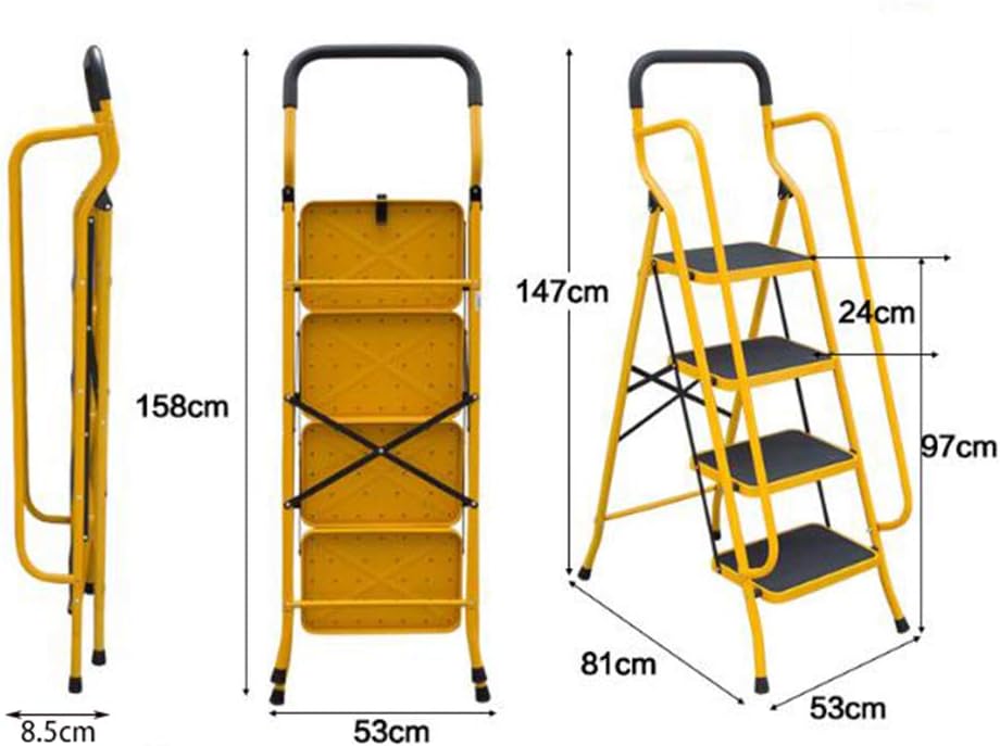 Beautiful and Practical Ladder, Not Only Stable and Safe, But Also Suitable for Various ScenesProduct Name:Double Armrest Metal Multifunctional LadderMaterial: MetalColor: Red, YellowSize: 53 * 8.5 * 158CmCan Bear Weight: 120 KgThis is a Metal Multi-Purpose Ladder,The Two-Step Ladder is 53 cm Long, 8.5 cm Wide and 158 cm High.Widened and Thickened Pedals, Safety Locks, Double Armrests and External Feet Design, Safe and Practical, Can Be Used in a Variety of Occasions, Suitable for a Variety of Decorative Styles.Applicable Occasions: Attic, Balcony, Living Room, Bedroom, Bookstore, Flower Shop, Coffee Shop, Tea Restaurant, Etc.Tip: Receive the Product, Need to Ventilate for 5-7 Days to Eliminate the Taste; Manual Measurement, the Size May Be Slightly Different, Please Prevail in Kind.Due to Light, Display and Shooting Angle, Some Errors May Occur. This is Not a Quality Issue;This Product is Manually Measured, the Error is Normal 1-2 Cm;We Will Ensure the Interests of Our Customers. Please Feel Free to Purchase;This Product Does Not Contain Other Accessories;Purchase According to Your Personal Situation at the Time of Purchase, Our Store Has a Variety of Goods, I Hope You Can Patiently Browse and Purchase.