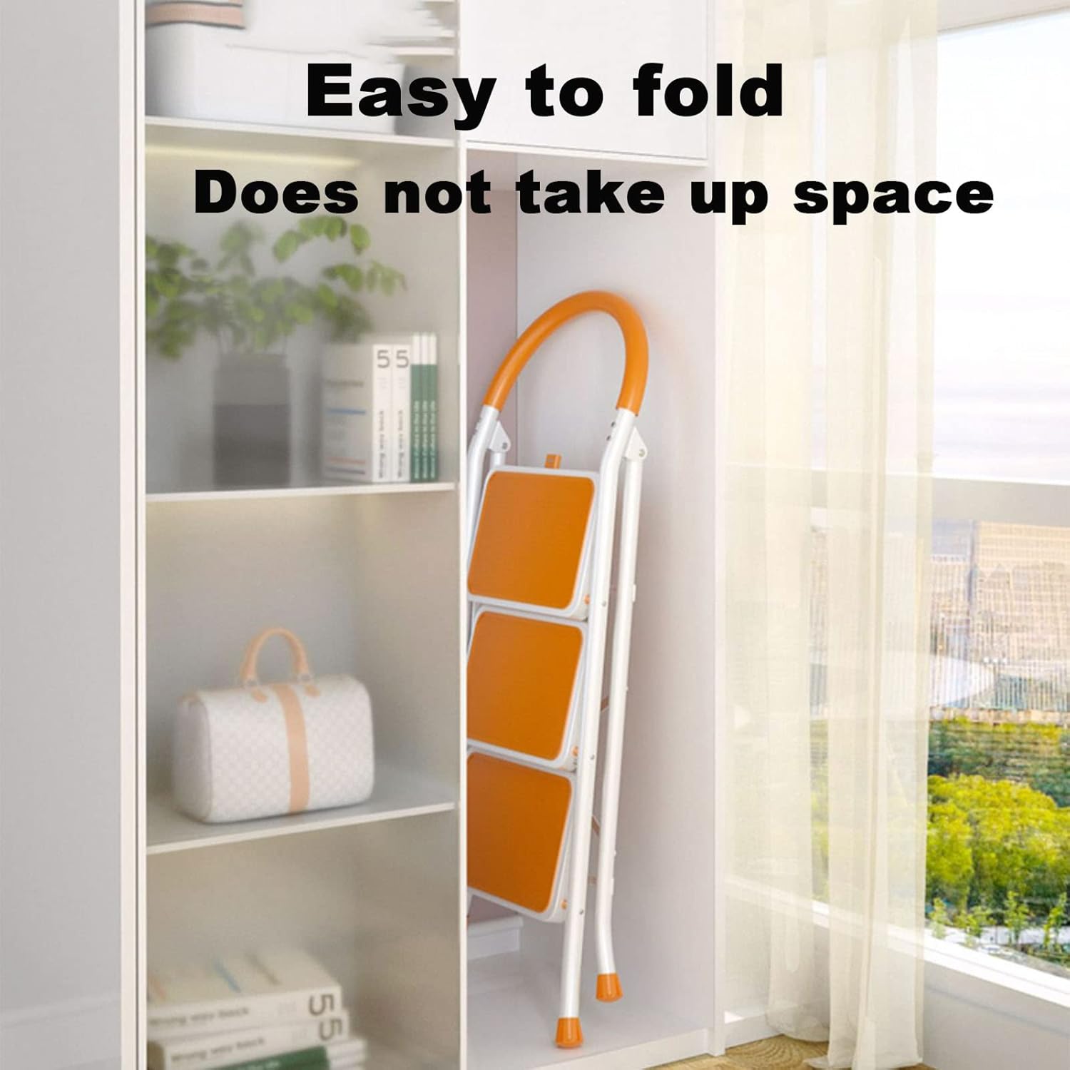 Fruit-colored folding ladder stool, thickened carbon steel material and wider pedals, safe and stable ascent, changing light bulbs, ascent to take things, high clean home ascent, safe and casual.Name: candy-colored folding ladder stoolMaterial: carbon steelColor classification: orange, greenLoad-bearing level: 150kgNumber of steps: 2-step ladder, 3-step ladderProduct size: 2-step ladder: 53x50x80cn(20.9x19.7x31.5inch) 3-step ladder: 53x69x110cm(20.9x27.2x43.3inch)Applicable scenes:Ladders, stools, shelves, flower shelves, book shelves, shoe shelves, etc.Contents include: ladder x 1 (not including ornaments, etc.)Folding good storageTake with you, the corner crevices of the home can be placed anywhere, does not occupy space.A ladder multi-purposeLadders, stools, shelves change at will.Safe load-bearing capacity of 150KGOuter eight feet design does not shake, solid and stable, ascent ladder more stable and safer.Note tips.1, due to different light, monitor configuration, personal understanding of color, there are differences in color, to receive the goods in kind shall prevail.2, because the goods are measured manually, each person's measurement and different gauges, there will be 1-3cm of error.