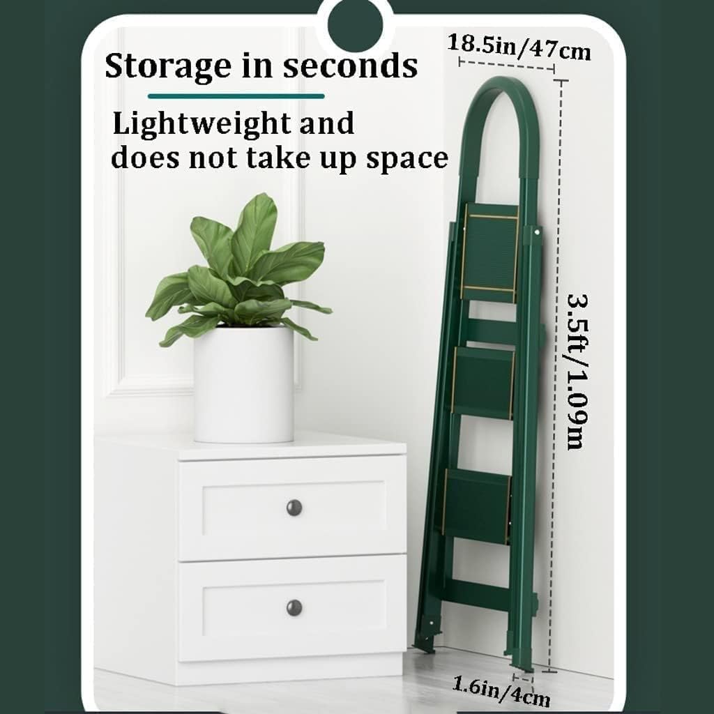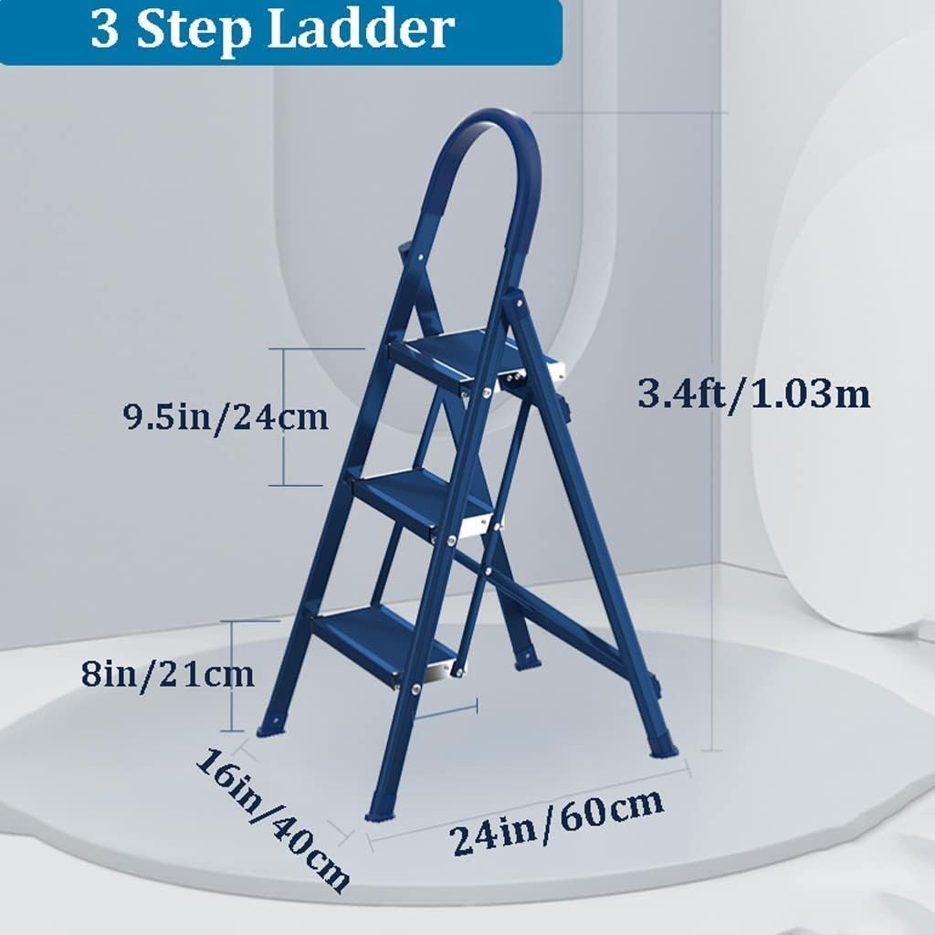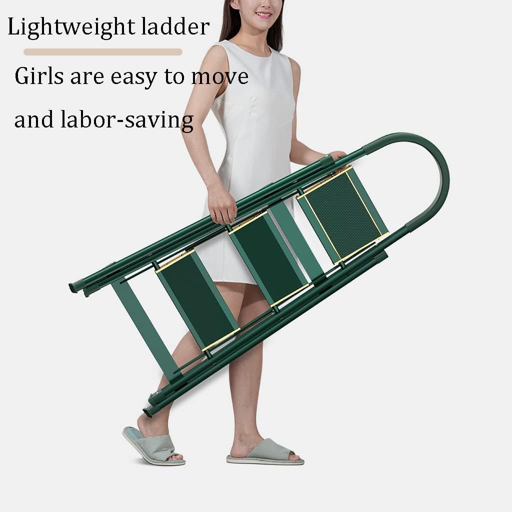 Easy Storage with Compact Design: The step ladder can be folded, quite portable & space-saving for storage. It's portable in your car trunk, or can be carried everywhere. Compact enough to slide under a bed, stash in a closet / behind a door, or simply lean against a wall.Ladder Type:Folding Ladder/Step Ladders Color: Blue,Green, BlackProduct Size:3 Step Ladder:(Expand Size:16x24x40.5in/40x60x103cm,Folded size:19x47x2.2in/49x119x5.5cm,Weight:6.9lb/3.15kg).4 Step Ladder:(Expand Size:17x28x52in/43x72x133cm,Folded size:20x59x2.2in/51x149.5x5.5cm,Weight:9.1lb/4.15kg).5 Step Ladder:(Expand Size:18x34x60in/46x87x153cm,Folded size:21x68x2.2in/54x173x5.5cm,Weight:11.1lb/5.05kg).6 Step Ladder:(Expand Size:19x41x74in/48x106x187cm,Folded size:22.2x77.6x2.2in/56.5x197x5.5cm,Weight:113.3lb/6.05kg)Load capacity:150KG/330LBObtain: Ladders × 1 (excluding any products)Wide Application:This ladder is a must-have for cleaning, painting, decorating, and all your DIY projects, it allows you to effortlessly reach those hard-to-access areas, perfect for home offices and both indoor and outdoor use, it takes the hassle out of your DIY or cleaning tasks, with this ladder, you can easily complete your projects.