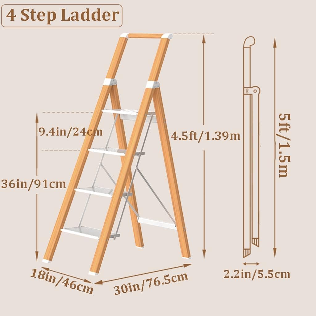 Easy Storage with Compact Design: The step ladder can be folded, quite portable & space-saving for storage. It's portable in your car trunk, or can be carried everywhere. Compact enough to slide under a bed, stash in a closet / behind a door, or simply lean against a wall.Ladder Type: Folding Ladder/Step Ladders Material: AluminumSize: 4 Step Ladder: 46*76*139cm; 4.5ft/139cm5 Step Ladder:47*92*163cm; 5.5ft/163cmLoad capacity:150KG/330LBObtain: Ladders × 1 (excluding any products)Wide Application:This ladder is a must-have for cleaning, painting, decorating, and all your DIY projects, it allows you to effortlessly reach those hard-to-access areas, perfect for home offices and both indoor and outdoor use, it takes the hassle out of your DIY or cleaning tasks, with this ladder, you can easily complete your projects.