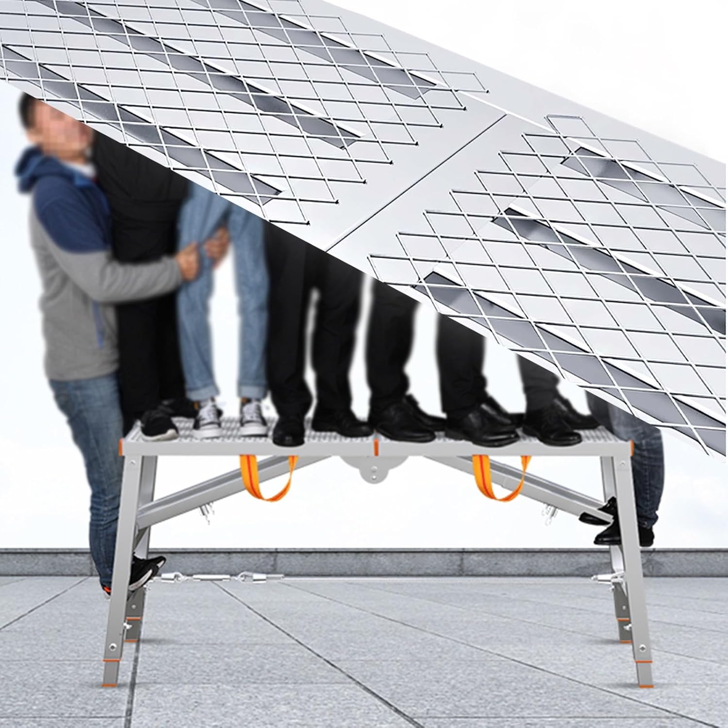 Do you find it cumbersome to carry a ladder when you are using it?Do you find regular step ladders too narrow when painting walls?Or maybe you have a high/low ladder in your home that takes up a lot of space?You can look over! This foldable portable adjustable height scaffolding can be a good solution to your problem! High or low, at home or working outdoors, it can do it all! How does it compare to a regular ladder?- It is an essential tool for professional and home work. - No assembly required, easy to use right out of the box. - Triangular support structure ensures greater stability. - Adjustable height in four positions, low/high! - With non-slip feet and surface for extra safety even in wet environments. - Foldable design for easy storage and portability, (can be used for home wall painting, car washing, window cleaning, painting)- Its sturdy construction can hold up to 350 lbs (158 kg). Specifications you want to know:- Material: steel- Color: Silver - Craftsmanship: welding - Shape: rectangular - No assembly required- Features: Foldable - Maximum load capacity: 158 kg/350 lbs. - Weight: 5 kg - 12 kg (10lb - 24lb)- Folded dimensions: 70cm x 30cm (27 3/5" x 11 4/5"), 80cmx30cm (31 1/2" x 11 4/5"), 90cmx30cm (35 2/5" x 11 4/5"), 100cmx30cm (39 2/5" x 11 4/5")- Adjustable Height: 70cm - 115cm (27 1/2in- 45 1/5in), 80cm - 130cm (31 1/2in - 51 1/5in), 90cm - 150cm (35 2/5in - 59in), 100cm- 160cm (39 2/5in- 63in) [You need to select the corresponding length and width] What you get.- 1 x portable scaffolding work platform How to use it?1. Unfold the platform and lay it flat on the ground.2. Extend the support feet on both sides of the platform. 3. Fix the vertical supports on both sides to ensure stability. 4. Adjust the height by selecting the desired height