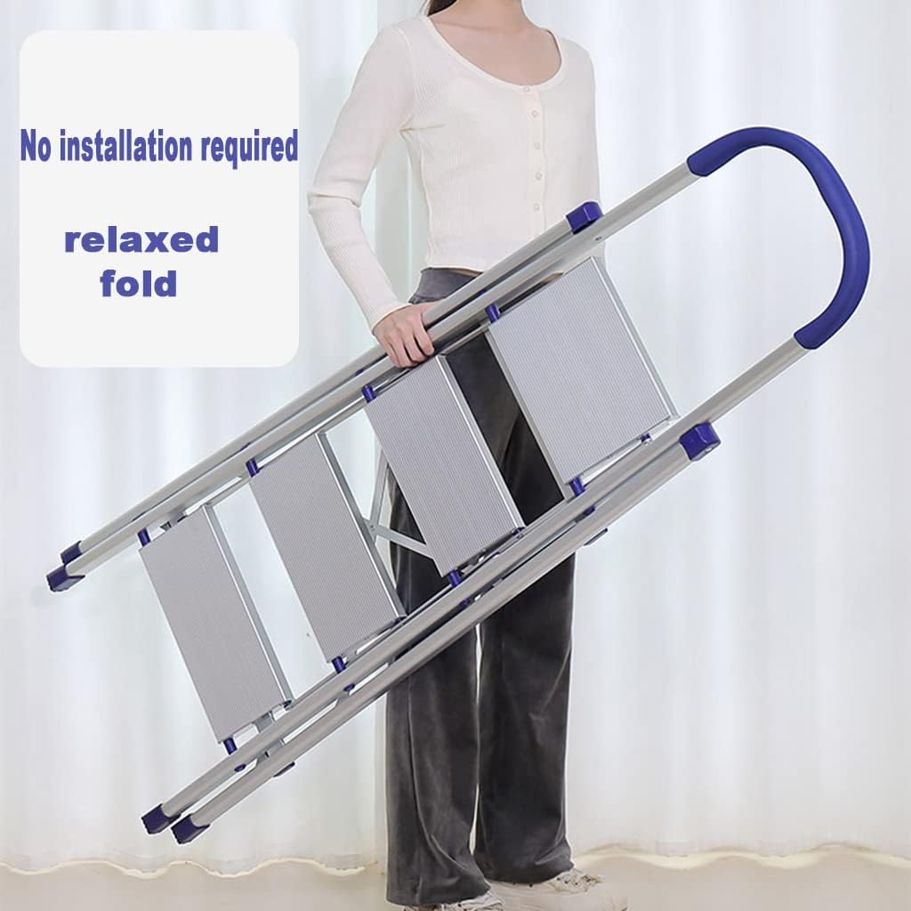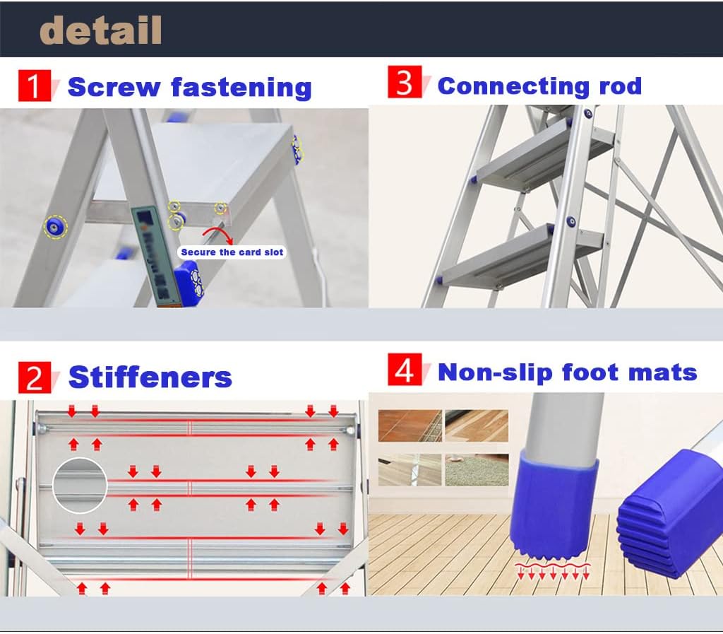 Name: Tool ladderMaterial: aluminum alloyColor classification: silverNumber of pedals: 3 stepsLoad rating: 150kgLadder type: single side ladderProduct Size:Applicable scenarios: ladders, shelves, flower stands, bookshelves, shoe racks, etcContents include: ladder x1 (excluding ornaments, etc.)This three-step tool ladder, made of aluminum alloy, with non-slip rubber foot covers, does not hurt the floor, is not easy to slip, with safety handrails, wider and thicker pedals, stable use, climbing work allows you to use with peace of mind.The connector is high strengthThe connection is strong and strong, and the opening and closing are silent, reducing friction and allowing you to use it longerLightweight ladder bodyLightweight and convenient, you can move on the goWidened pedal climbing is safe and stableMake every step feel like stepping on flat groundNote Tips:1. Due to different lighting, display configuration, and personal understanding of color, there is a difference in color, and the goods received shall be subject to the actual product.2. Since the goods are all measured manually, each person's measuring method and measuring tool are different, and there will be an error of 1-3cm.