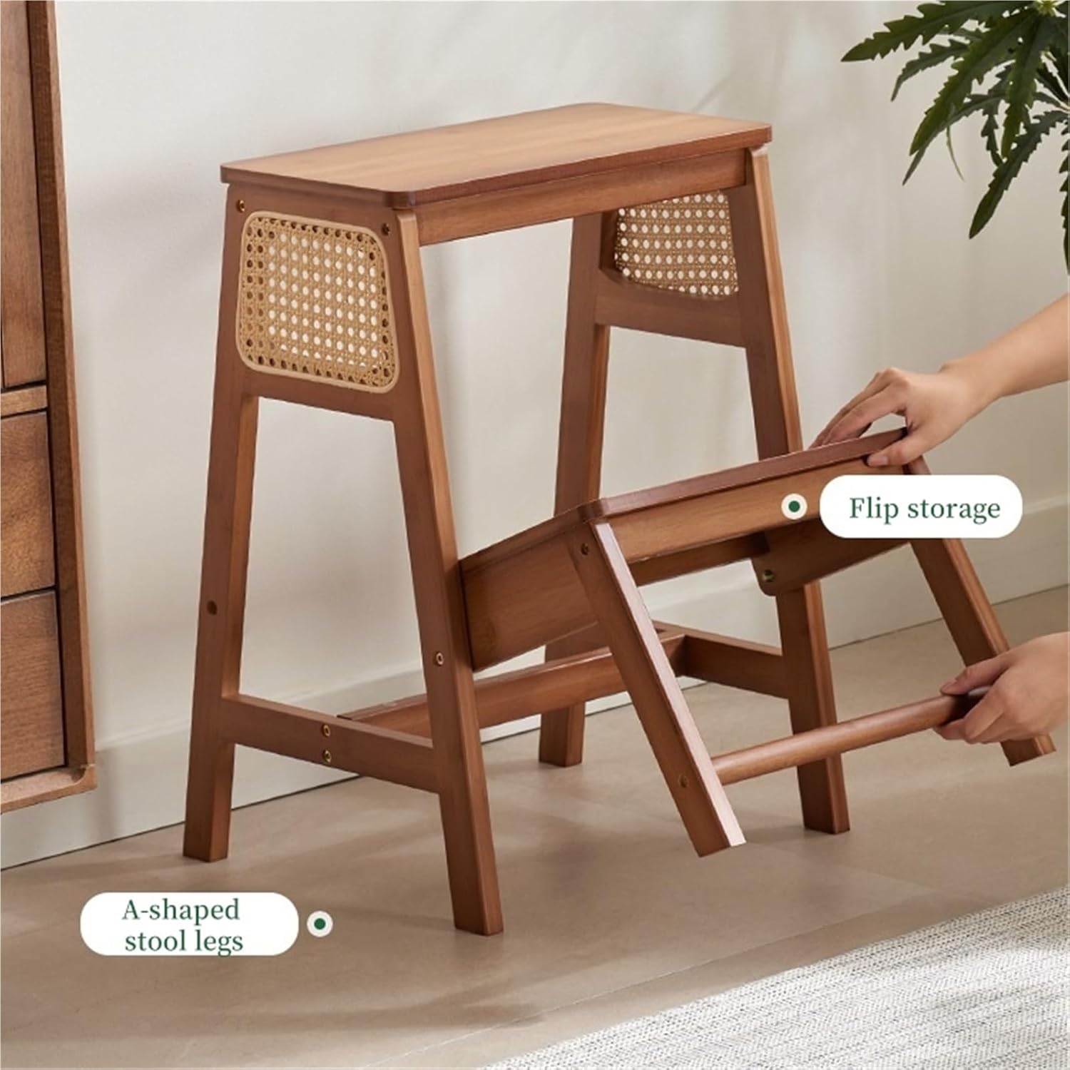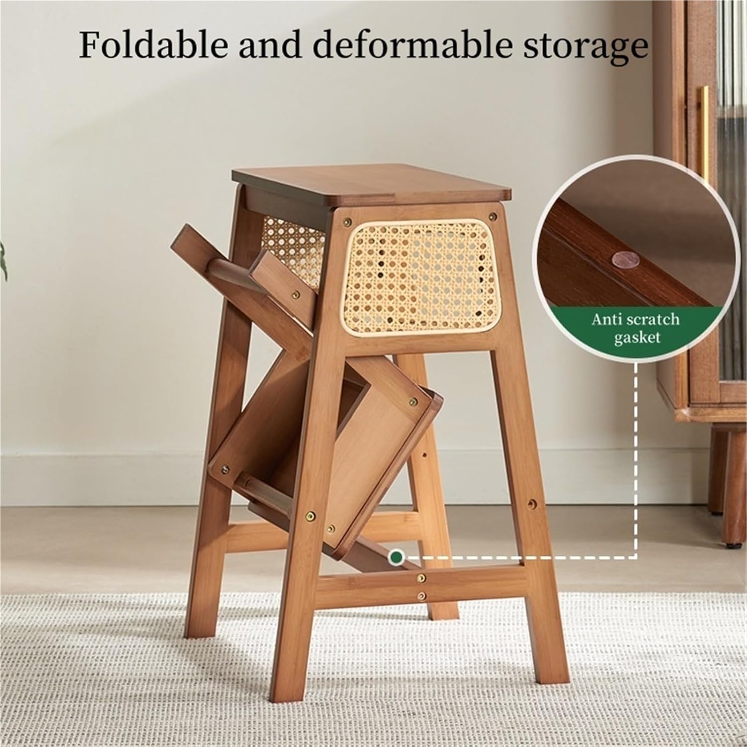 This multifunctional stool has simple and smooth lines, unique and stable, and easily integrates into various home styles.It is a two-step ladder stool that meets different height requirements, with widened pedals up to 22cm for smooth and stable stepping. Thick stool legs with strong weight-bearing capacity, ensuring stability whether resting or picking up items from a height.It can be flipped and transformed for storage, and can be switched between chairs and ladders. It is small in size and easy to move. The spacious stool design provides a comfortable and comfortable sitting experience, adding convenience and comfort to your life.Product Name: StoolProduct Material: Bamboo+Resin rattanProduct Style:Simple/ModernPackage List:1/StoolUsage: Hotel,Living Room,Room,Apartment,KitchenNote:1. Product images do not include products other than the product itself.2. Please confirm the size and color before purchasing.3. Manual measurement may have some small errors, please refer to the actual product, thank you!4. Due to differences in lighting, shooting angles, or lighting under the monitor, there may be slight color differences. Please understand.
