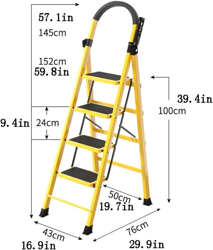 Our professional and enthusiastic team always strives to bring customers with quality products and wonderful shopping experience.【Name】Household Folding Step Stool【Material】Oxidized steel【Size】4 steps: unfolding: 145X43X76cm; folding height 152cm;【Weight】4 steps: about 6kg【Load Bearing】150kgNote: In the product description display, products other than step stool cabinets are for display only. This product only includes folding step stools.1. The size is manually measured, there may be slight errors in actuality.2. Due to light problems, the picture may have a certain color difference, please refer to the actual product!3. There are more boutiques in the store, welcome to shop.If there is any question about this , no need complicated process, just Contact us directly via Amazon message box, we will make it right for you immediately.