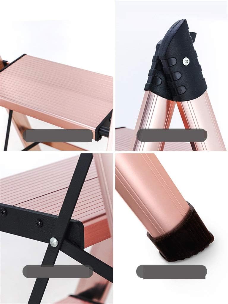 A safe and stable ladder will give you peace of mind and comfort.Product Details:Material: aluminum alloyInsulation: non-insulatedLoad capacity: 150 kgNumber of pedals: two step ladder, three step ladderLadder type: single side ladder————————————————Two-step ladder:Weight: 3 kgExpanded size: 42*41*67 cmFolding size: 47*5*72 cm————————————————Three-step ladder:Weight: 5.7 kgExpanded size: 46*71*90 cmFolding size: 50*5*97 cm————————————————Product Features:【Characteristics】Using electrophoresis, the gloss is strong and does not fade.【Characteristics】Safety widened non-slip pedals, enough to stand on both feet, widening each layer.【Characteristics】High strength polyamide material for long life.【Characteristics】Three beams are structurally stable for a safer experience.【Characteristics】Folded to a thickness of only 5 cm.Very light and thin after folding, any gap can be placed at will.————————————————Warm tip:Tip: This product only sells ladders and does not contain any decorations.Tip: All products are taken in kind. Due to the problems of light and angle, some products have color difference. Please understand!Tip: The product is manually measured. Due to different measurement tools, some products have 1~3CM error, please understand!Tip: This product uses international logistics. The normal delivery time in Japan is 10 to 15 days. Delivery time in Europe and the United States is 15 to 25 days.Tip: If you encounter problems during purchase, transportation or use, please contact us by email. We will help you with your answers.We guarantee the interests of every customer, rest assured to buy.