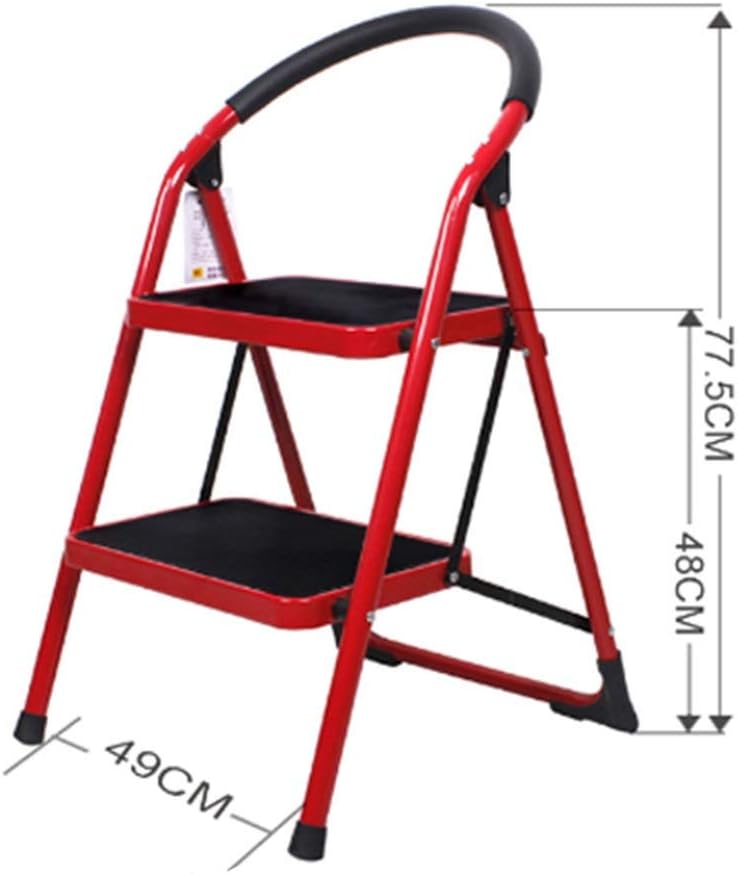 A safe and stable ladder will give you peace of mind and comfort.Product Details:Material: ironInsulation: non-insulationLoad capacity: 150KGNumber of pedals: two step ladderLadder type: Unilateral ladder————————————————Two step ladder :Expanded size: 49*77.5CM————————————————Product Features:Iron material - Stepladder is made of iron material, which has a large load-bearing capacity and a safe load of 150KG, which is stable and safe.Handrails - Household ladders use a heightened practical handrail design, safe and stable.Multifunctional design - Not only can be used as a ladder, but also as a flower stand, shelf, footstool.Folding design - Folding four step ladder design, easy to store, easy to fold.Non-slip design - The ladder has non-slip foot covers, non-slip and wear-resistant, and does not damage the floor.————————————————Warm tip:Tip: This product only sells ladders and does not contain any decorations.Tip: All products are taken in kind. Due to the problems of light and angle, some products have color difference. Please understand!Tip: The product is manually measured. Due to different measurement tools, some products have 1~3CM error, please understand!Tip: This product uses international logistics. The normal delivery time in Japan is 10 to 15 days. Delivery time in Europe and the United States is 15 to 25 days.Tip: If you encounter problems during purchase, transportation or use, please contact us by email. We will help you with your answers.We guarantee the interests of every customer, rest assured to buy.