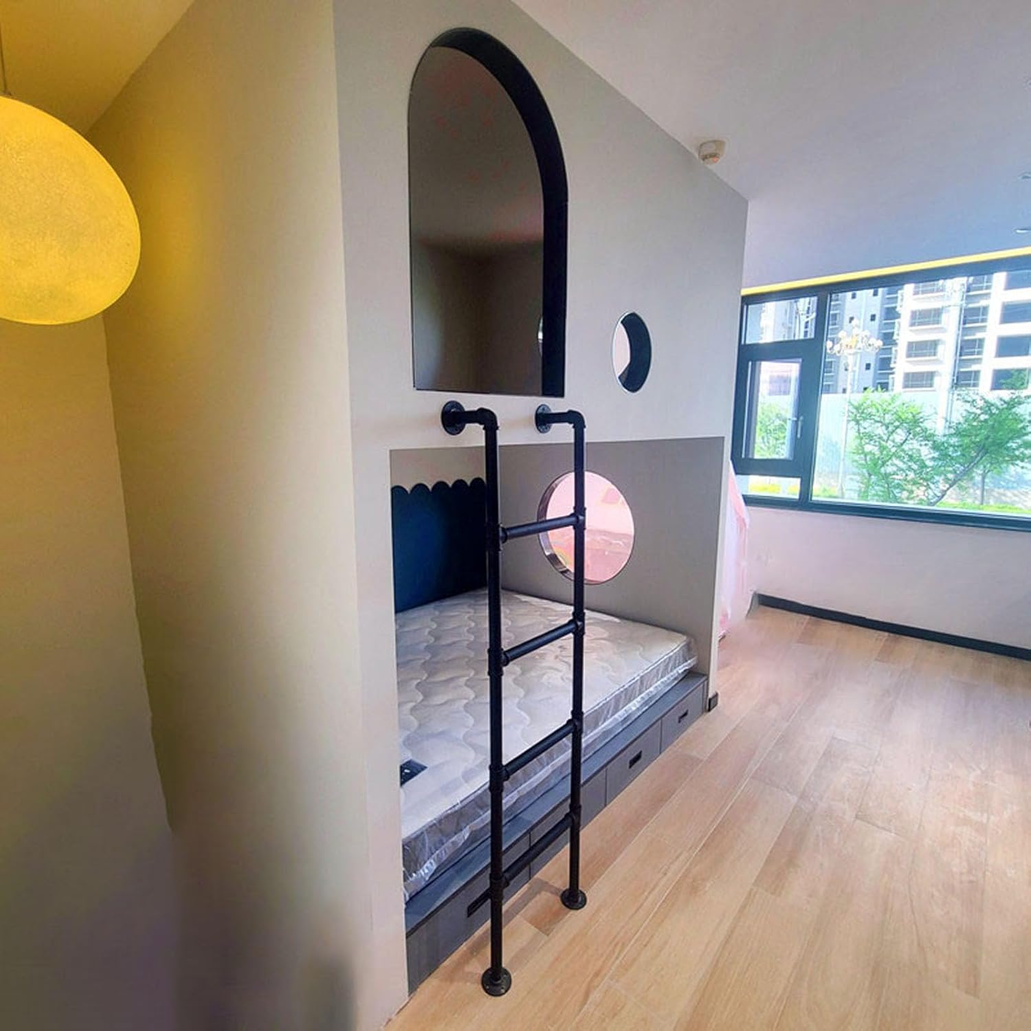 The Basement Window Well Egress Ladder High-temperature baking paint process, bright color, more wear-resistant; Strong load-bearing capacity, not easy to deform, more stable.Advantages:1. Strong and light, Safety anti-slip pedal, ergonomic.2. easy to install.Product Name: Wall Bunk Bed Laddermaterial: metalColor: black, whiteLoad: 150KG/330 lbsLadder width:45 cm/17.71 inPackage contains:1*ladder