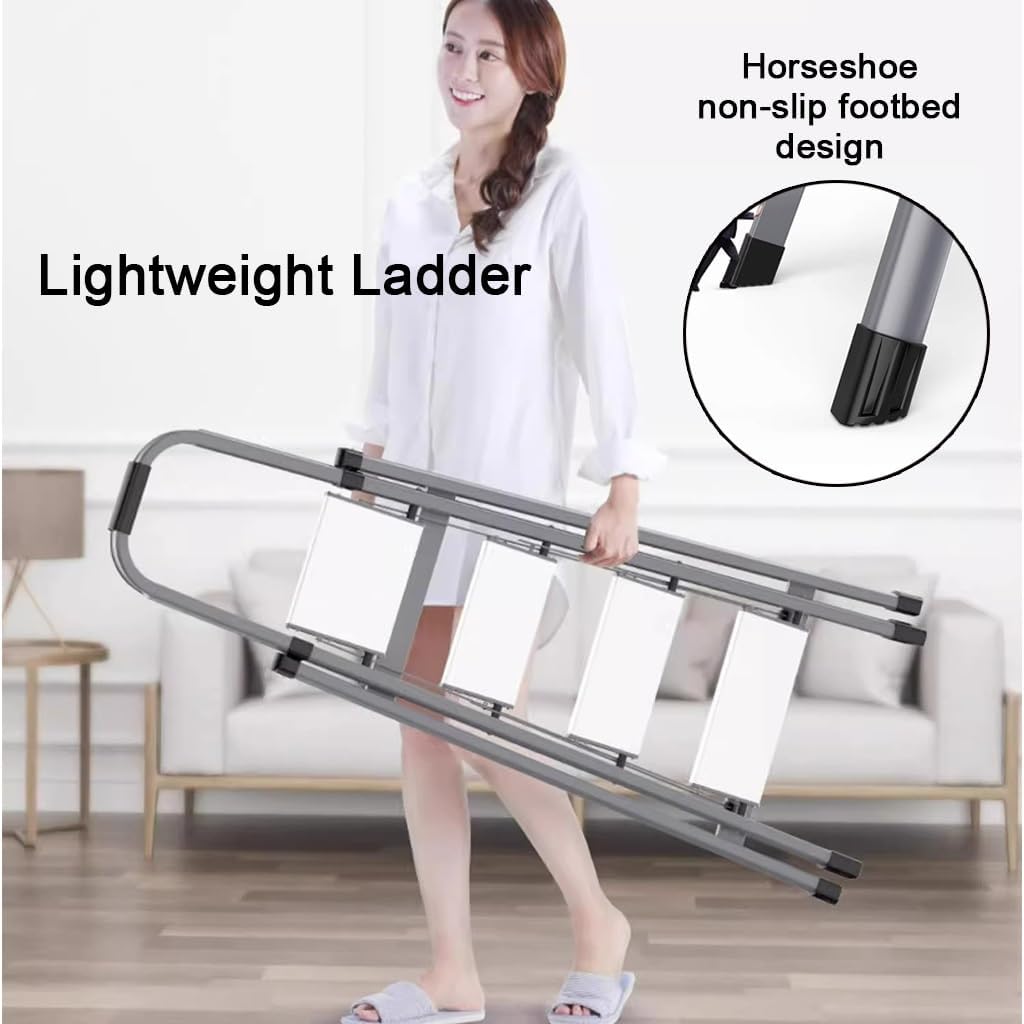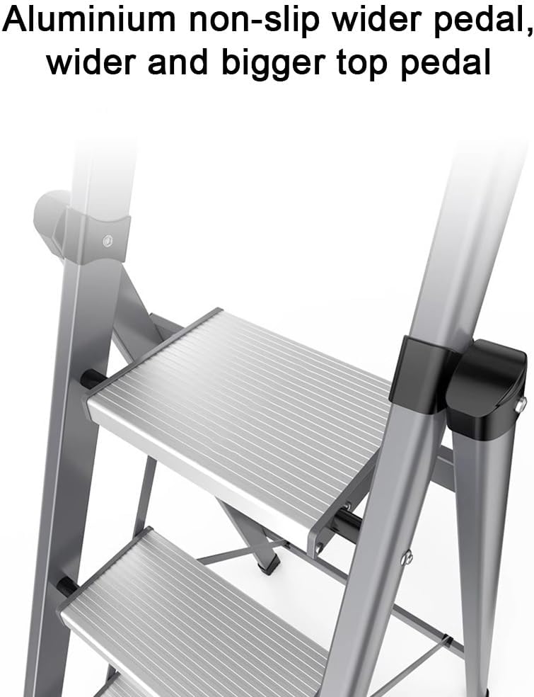 【Product specification】--Color: Black , Red , White--Product material: Aluminium alloy--Number of treads: 5 step ladder--Top pedal height: 107cm--Package Contents:1 X Ladder【Tips】: We only sell Ladder, other items are props. All data is measured by hand with a slight error. Due to physical factors such as light, camera color and lighting, there may be subtle color differences.
