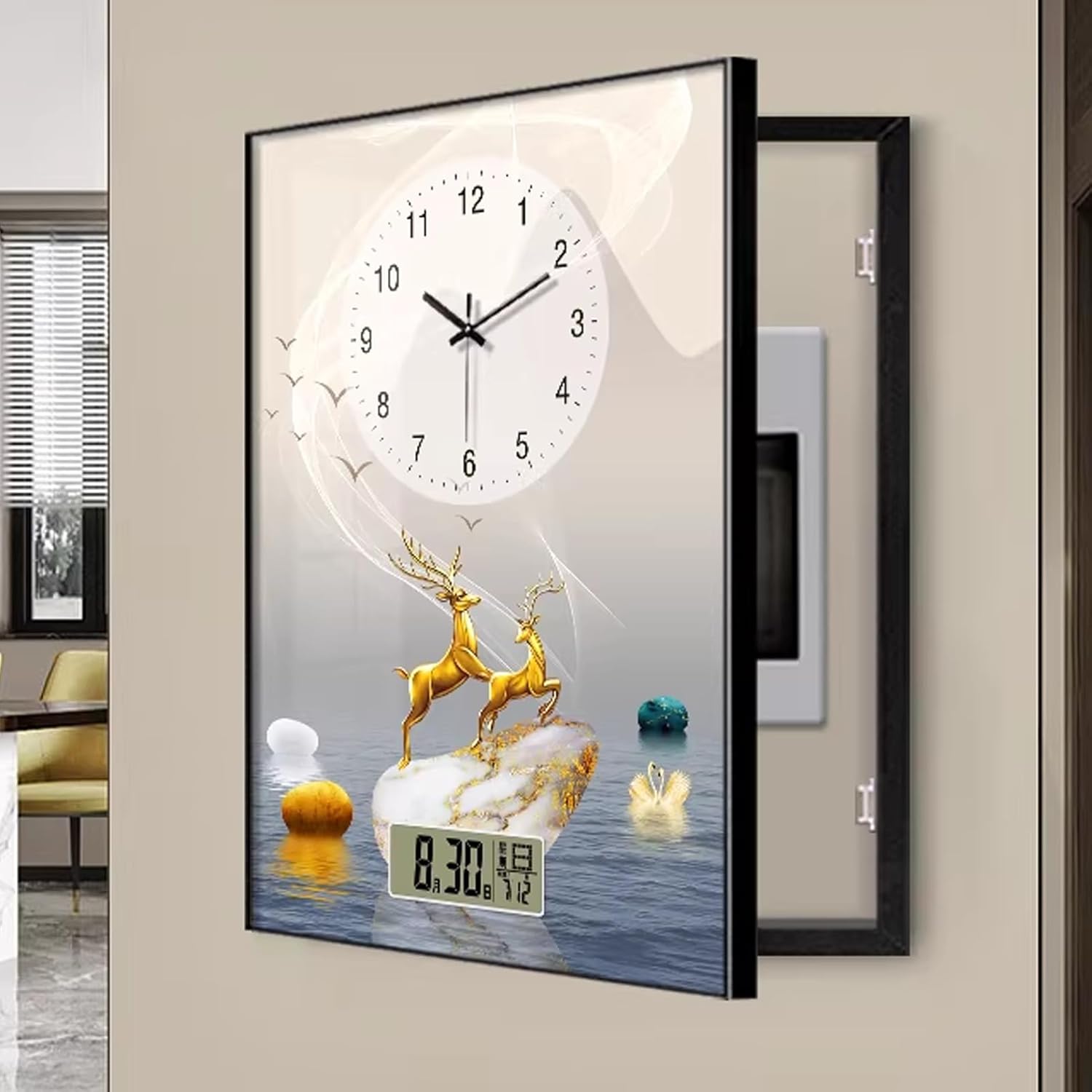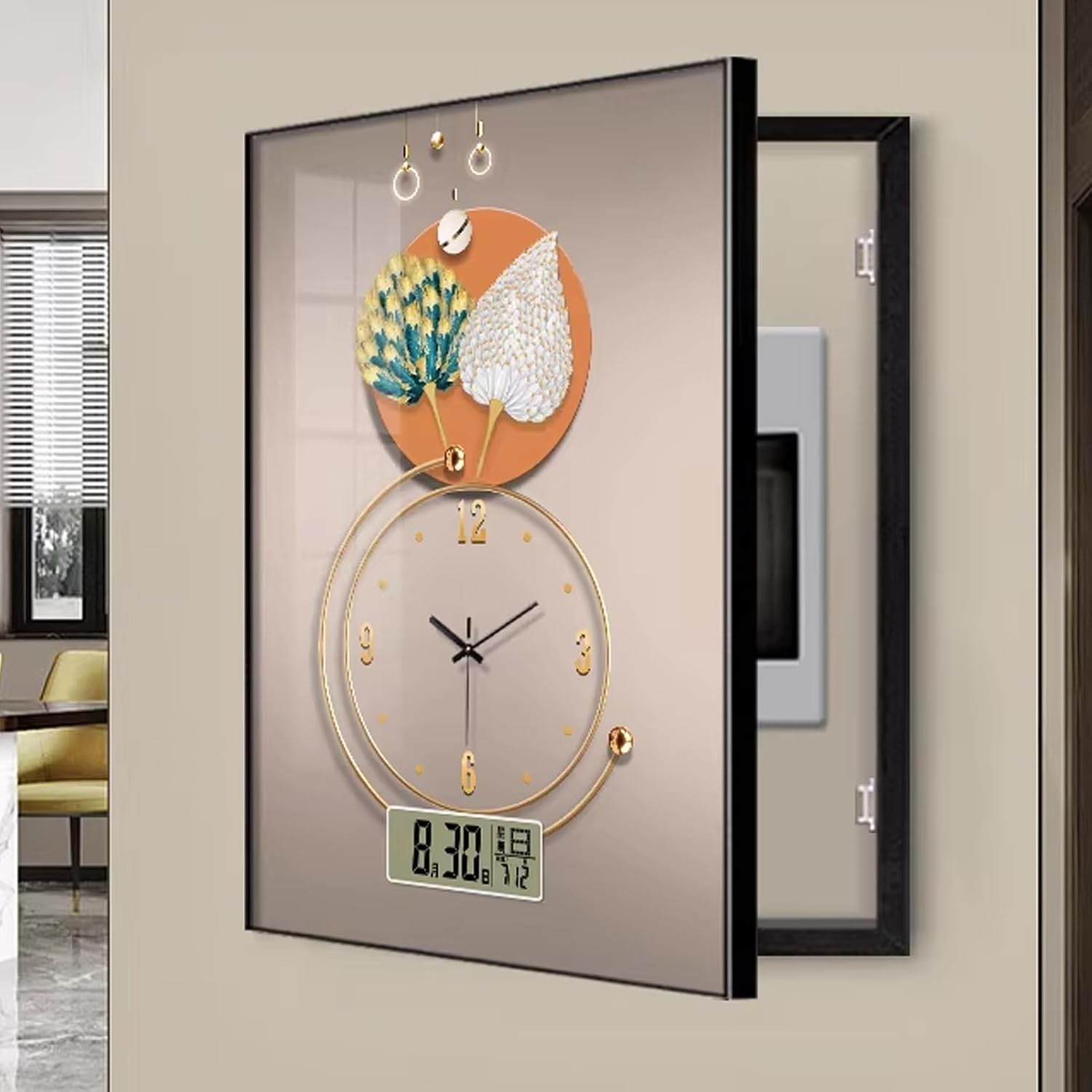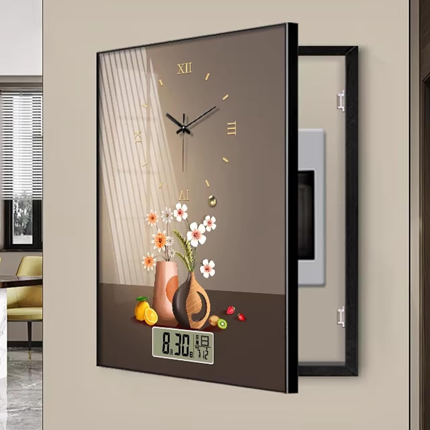Snaweo electric meter box decorative painting features a flip-up cover that opens easily to hide your circuit breaker box. Enjoy a quiet environment with a clock device, which is fit for the bedroom or living area.Made of high-quality materials and metal frame, it can well ensure durability and beauty, and is relatively practical.There are 5 sizes to choose from to accommodate various instrument box sizes; easy to measure and perfect fit.Product Name: Breaker Box Decorative Cover/Wall mounted electrical panel cover/Fuse Box Cover Cabinet/Flip - Up Meter Switch boxMaterial: MetalColor: Multiple styles availableSize: 40x50cm/15.7x19.7in , 45x60cm/17.7x23.6in , 50x60cm/19.7x23.6in , 50x70cm/19.7x27.5in , 60x80cm/23.6x31.5inMounting Type: Wall-MountSuitable scenarios: Kitchen, living room, entryway, bedroom, dining roomPackage Contents: 1 x Circuit Breaker Box Cover, Mounting Accessories (Batteries are not included; please provide your own.)Note:1. Only sell Fuse Box Cover Cabinet, other products are shooting props.2. There may be some differences between the picture and the product due to display and lighting, please refer to the actual product.3. Because it is processed by hand, the finished product usually has an error of 1-2 cm, please understand.