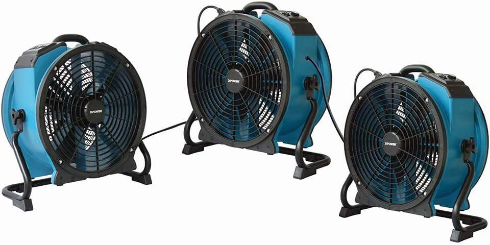 The professional XPOWER X-47 ATR is the ultimate commercial axial air mover - packed with features such as a variable speed control, 3 hour timer, 360-degree rotation rack/stand, and built in daisy chain-able power outlets to correctly complete a variety of jobs. A specially designed SEALED MOTOR prevents damage from water and other contaminants. The X-47ATR efficiently produces up to 3600 CFM with a low 2 .8 AMP DRAW. Use this high performance fan with its unique grill design to extend a powerful and focused stream of air up to 60 ft in any direction. Easily transportable, this unit’s super lightweight yet durable ABS INJECTION MOLDED housing can be stacked up to 5 units high. Ducting hoses (16DH25 or 16DH15) and adapter kit (16DHK) are available separately for confined space ventilation up to 25 ft