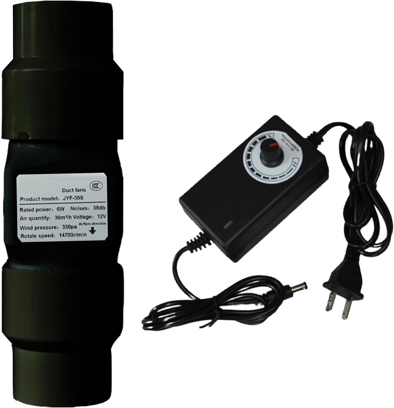 2Inch 50mm 22CFM Inline Duct Fan with Speed Controller★ Ideal for controlling hot and humid conditions in grow tents/rooms.★★ Our inline duct fan helps with ventilation issues. This fan is built durable, runs smooth and quiet.☆ Characteristics:★ ★ ★ High quality copper motor and high quality rotor ensure fast speed and strong wind.★ ★ ★ The shell and blades made of high quality ABS are durable and not easy to deform.☆ Specification:♦ Size: 2 inch / 50 mm♦ Condition: 100% Brand New♦ Material: ABS♦ Color: White♦ Power: 6W♦ Voltage: 12V♦ Nominal Frequency: 50Hz♦ Rated speed: 14700r / min♦ Noise (dB): 38♦ Air volume: 36 m³ / h♦ Opening diameter: 50mm / 1.9in♦ Detailed Size: 110x55.5mm / 4.3x2.1in♦ Installation method: Adapter☆ Delivery Content:♦ 1 * Exhaust Fan♦ 1 * Adapter