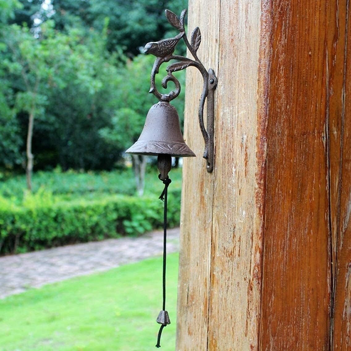 Retro Doorbell Cast Iron Flower and Bird Decoration Handbell Doorbell Vintage Villa Bell Decorative Bells ★ Features: ★ Rustic finish bell makes it unique addition to your patio, porch, front door for good luck, decorative bell for storm door, vintage themed shop, garden ★ A traditional wall hanging overhead door bell, classic and elegant design complete with metal clapper and natural rope attachment to the bell for extra coastal charm ★ You can hear this sweet sound, which brings unlimited fun to your life every time your door is opened or closed,it will remind you when someone enters the house, always give you an unexpected surprise experience. ★ The small animal shape of the doorbell is very classic. It is made of high quality alloy and iron, which makes it very strong. ★ The exquisite appearance makes it a unique ornament, perfect for home, cabin, porch, garden, store, yard, and anywhere you like. Specification: Product Name: Hand-cranked doorbell Material: cast iron Style: retro pastoral Package Contents: Doorbell*1