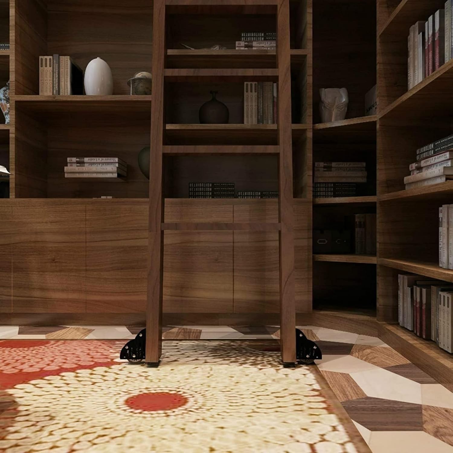 Rolling Library Ladder Hardware Kit - Sliding Barn Door Hardware Track Accessories - Sliding Quietly - Black Carbon Steel Hardware - with Floor Rollers - Bearing 200kg