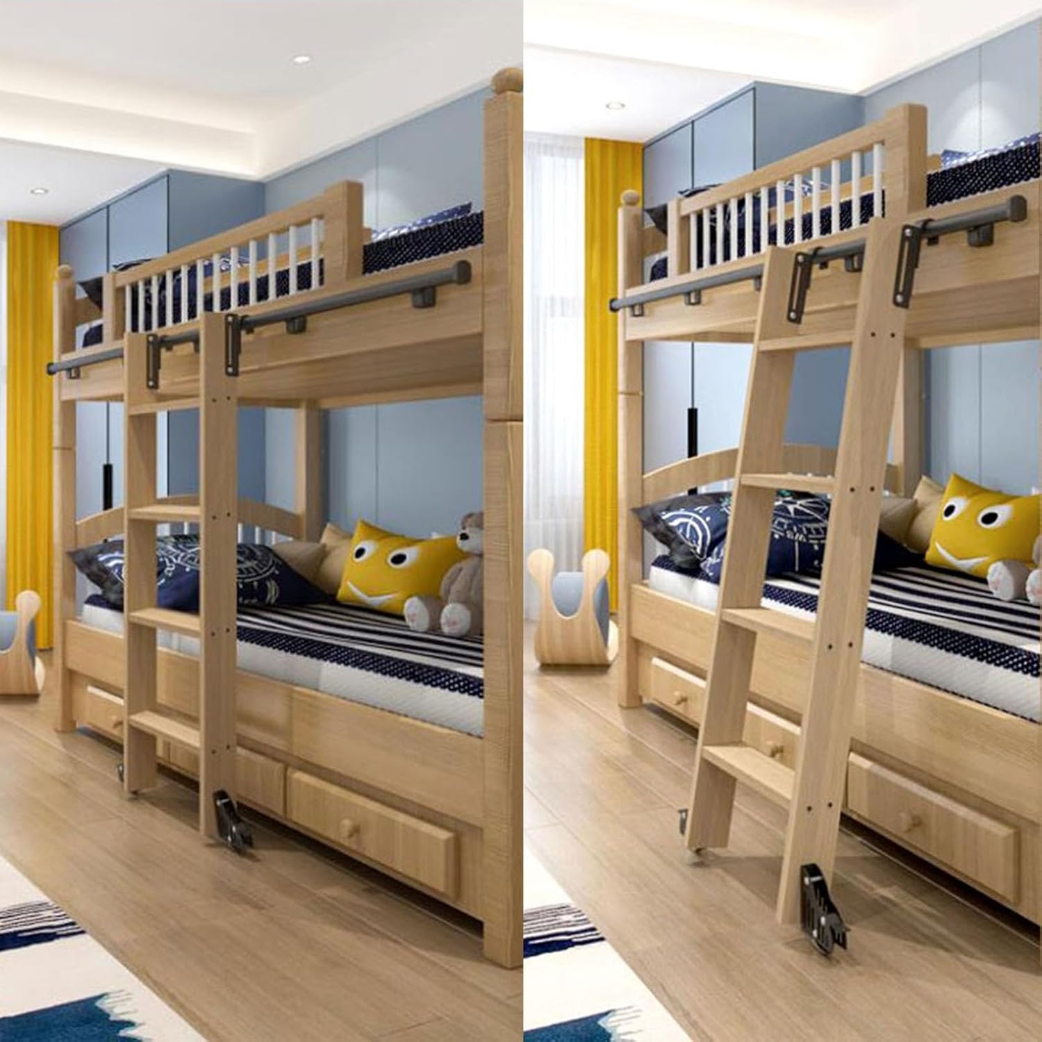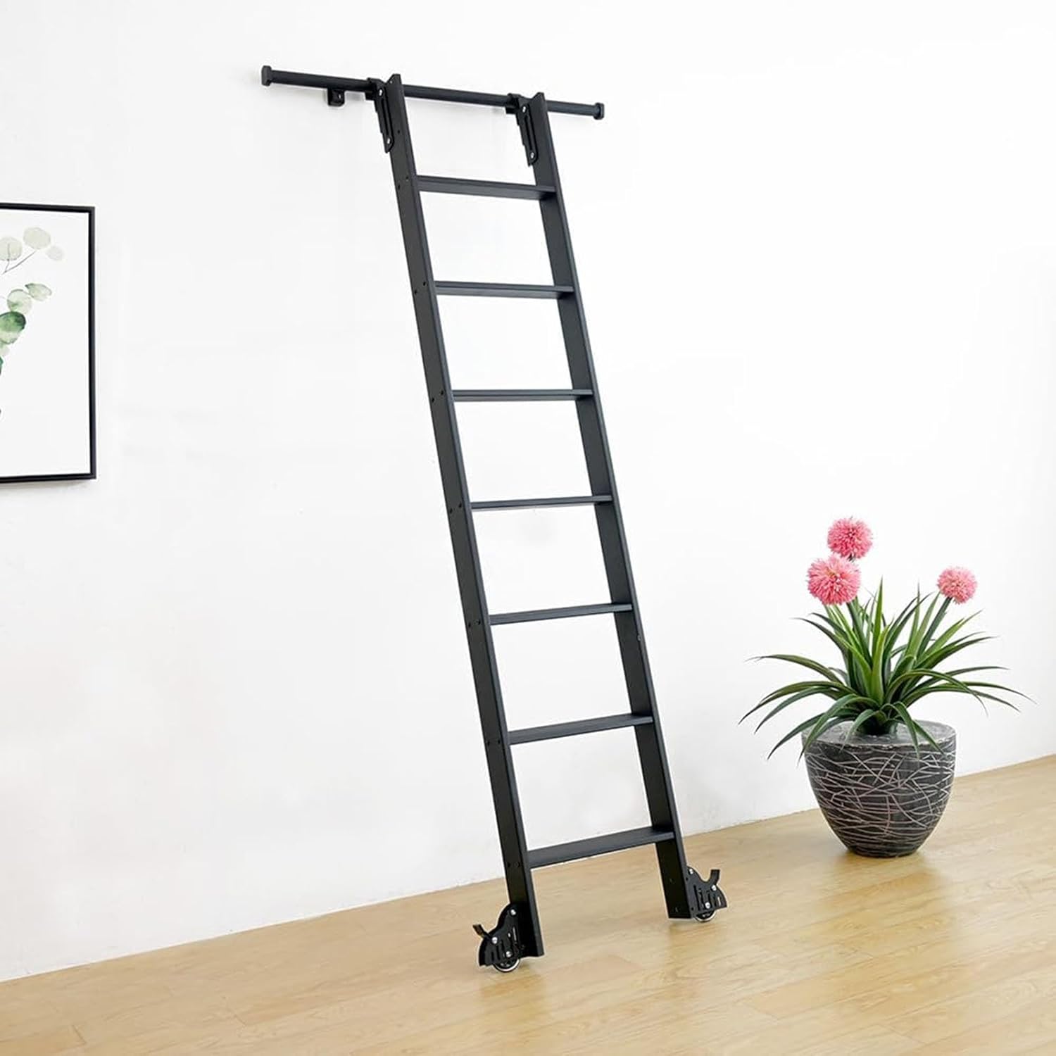 With the help of this track,you can go wherever you want,very suitable for Library,loft,storage room,cloakroom,wine cellar,etc. And it is effortless to climb up and retrieve things,which brings a another highlight to your home and assures you with outstanding quality. Detailed instrctions: -- The product only including hardware,not including ladders. -- High-quality floor roller wheels support separate purchase.
