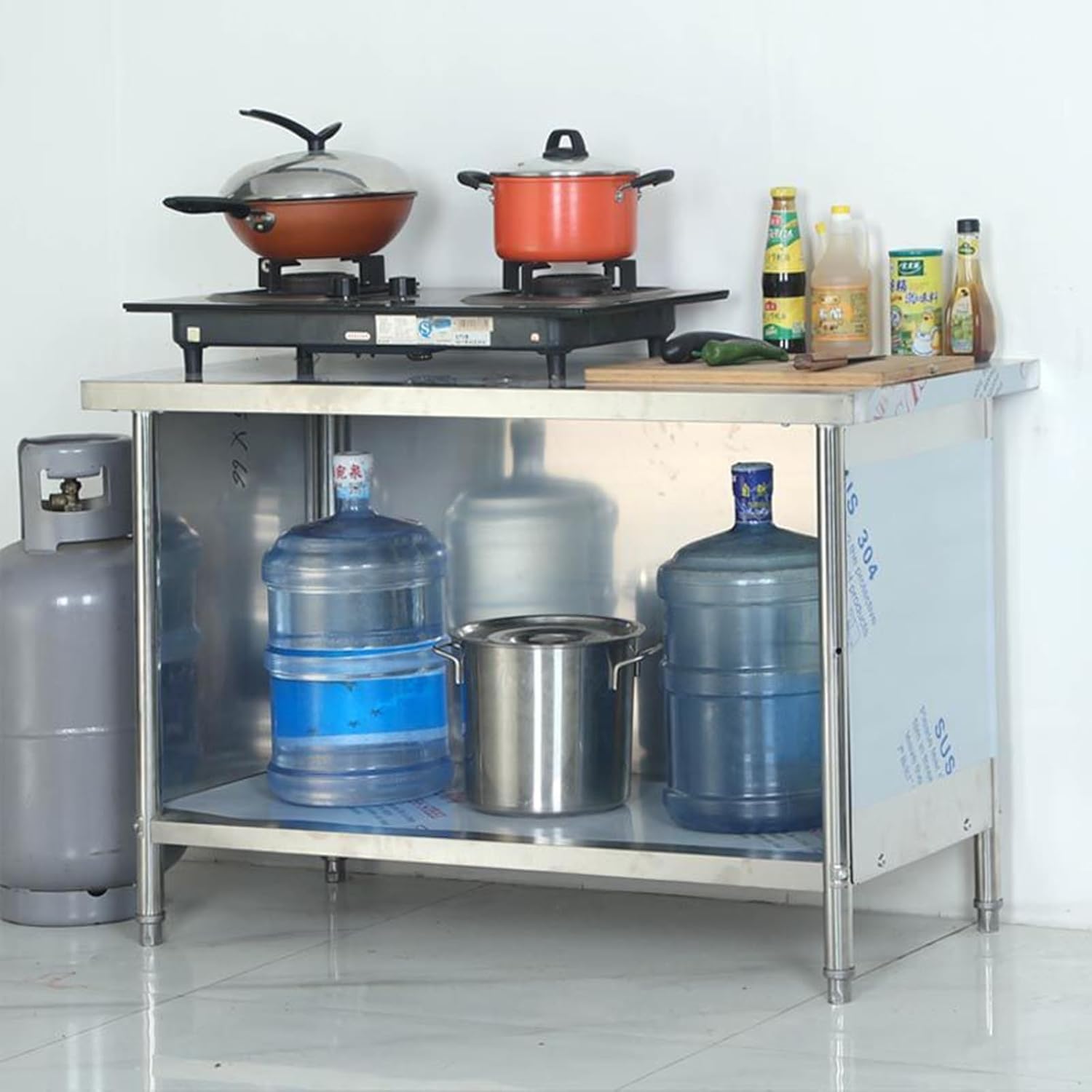 Product Name: Stainless Steel Workbench Product Process: Brushed Stainless Steel Size: 80x50x80cm/31.5x19.7x31.5“ , 100x50x80cm/39.4x19.7x31.5” , 60x60x80cm/23.6x23.6x31.5 “ , 70x60x80cm/27.6x23.6x31.5” , 80x60x80cm/31.5x23.6x31.5“ , 90x60x80cm/35.4x23.6x31.5” , 100x60x80cm/39.4x23.6x31.5“ , 70x70x80cm/27.6x27.6x31.5” , 80x70x80cm/31.5x27.6x31.5" , 90x70x80cm/ 35.4x27.6x31.5“ , 100x70x80cm/39.4x27.6x31.5” , 80x80x80cm/31.5x31.5x31.5" , 90x80x80cm/35.4x31.5 x31.5“ , 100x80x80cm/39.4x31.5x31.5” Application: hotel / logistics / restaurant / workshopProduct list: workbench x1 (other items not included)Attention: This product is made of stainless steel, slight scratches may occur Product dimensions are measured manually and may vary slightly Due to light and shooting angle, slight color differences may occur