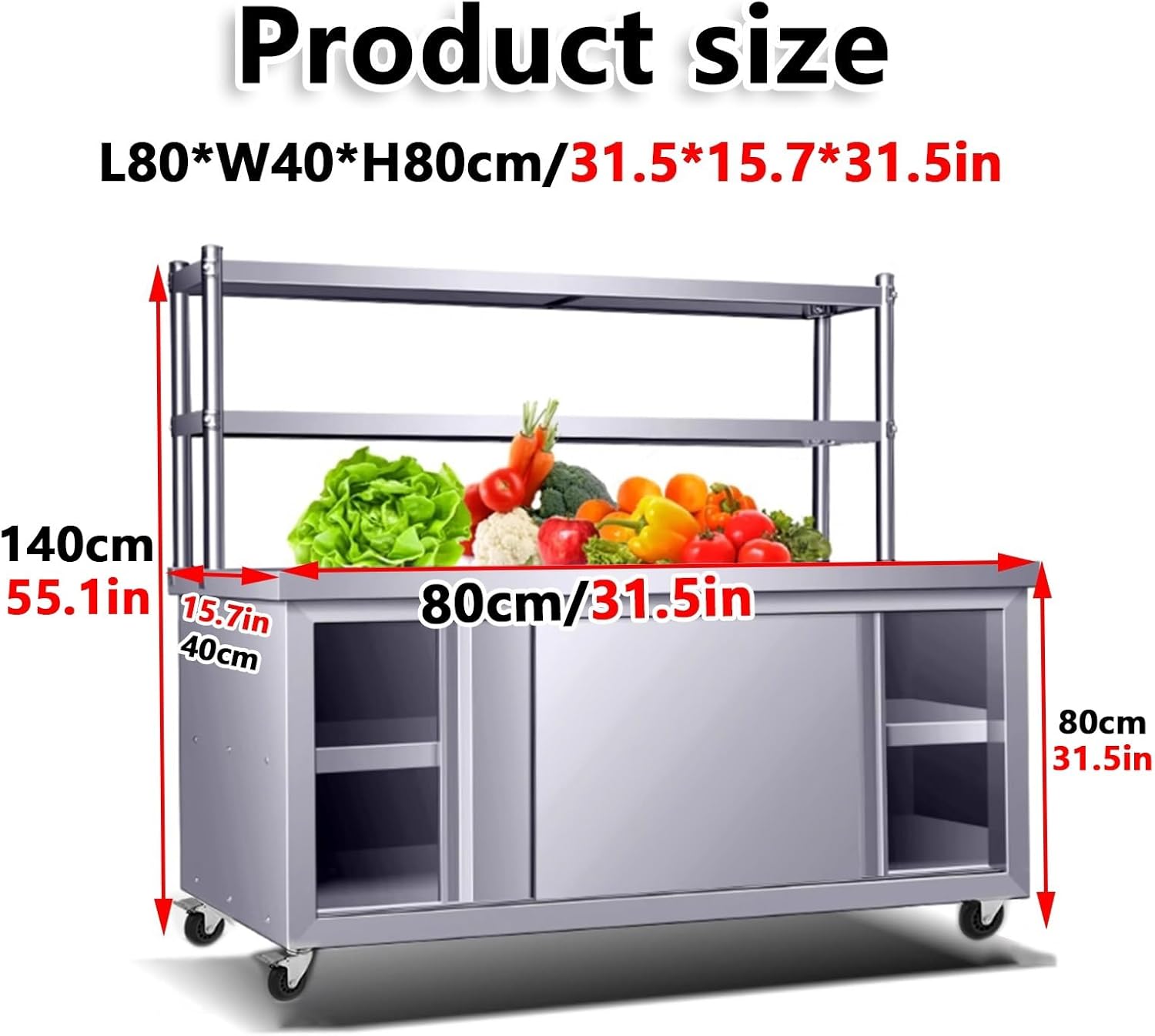 The stainless steel prep table is designed to enhance your organizational skills while providing easy access to your essentials. With two sliding doors, this versatile workbench keeps your items neatly stored, ensuring a clean and tidy environment in any setting. Whether in your kitchen, laundry room, or garage, it serves as an indispensable tool for storing belongings, chopping vegetables, or kneading dough. **Key Features:** 1. **Durable Stainless Steel Construction:** This prep table offers exceptional strength and durability, making it ideal for heavy-duty use. Its sleek design not only enhances your workspace but also is easy to clean and maintain. 2. **Spacious 2-Tier Storage:** The cabinet features two tiers, providing ample space for organizing tools, kitchen supplies, or equipment. Say goodbye to clutter and hello to an orderly space. 3. **Reinforced Bottom Shelf:** The sturdy bottom shelf maximizes your storage capacity, supporting up to 230 lbs. Perfect for heavy kitchen appliances or workshop tools, it is built to handle your toughest tasks. **Specifications:** - **Material:** High-quality Stainless Steel - **Thickness:** 0.7mm for enhanced durability - **Versatile Use:** Ideal for hotels, kitchens, restaurants, and workshops - **Assembly Required:** Yes **Package Includes:** - 1 x Stainless Steel Table with Cabinet - 1 x User Manual **Important Notes:** - For your safety, please wear gloves during installation due to the stainless steel material. - Manual measurement may result in a 1-3 cm variance; we appreciate your understanding. - Color variations may occur due to lighting and display differences, please refer to the actual product. Upgrade your workspace with the stainless steel prep table, where functionality meets style. Whether you’re a professional chef or a home cook, this table is designed to enhance your culinary experience and keep your space organized.