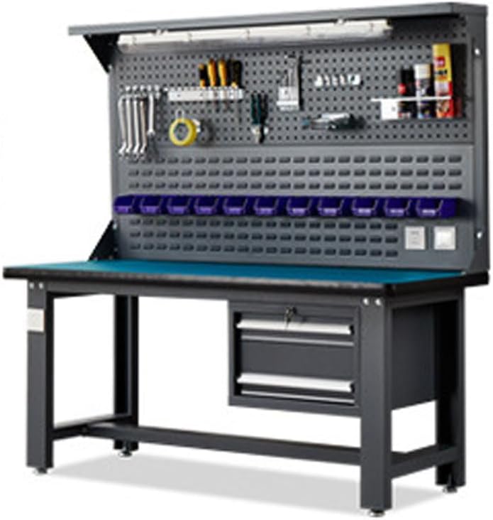 Workbench parametersWorkbench type: anti-static workbenchMaterial: steelName: composite workbenchColor: industrial graySize: L2100/1800/1500/1200X W750 X H800 + 450/1000mmTable thickness: 50mmLoad: 1000kg (single drawer load 80kg)Table material: composite table, anti-static table, beech tooth joint table, stainless steel table, iron plate table.Functional accessories: under-table hanging two drawers, floor-standing fixed four-drawer cabinet, floor-standing one-drawer one-door cabinet, floor-standing single-door cabinet, light board, louver hanging board, square hole hanging boardProduct features: overall disassembly and assembly structure, the hanging boards above the desktop can be arbitrarily combined and interchangedSurface treatment: pickling and phosphating treatment, surface epoxy resin electrostatic powder sprayingApplicable scenarios: repair shops, workshops, factories, laboratories,