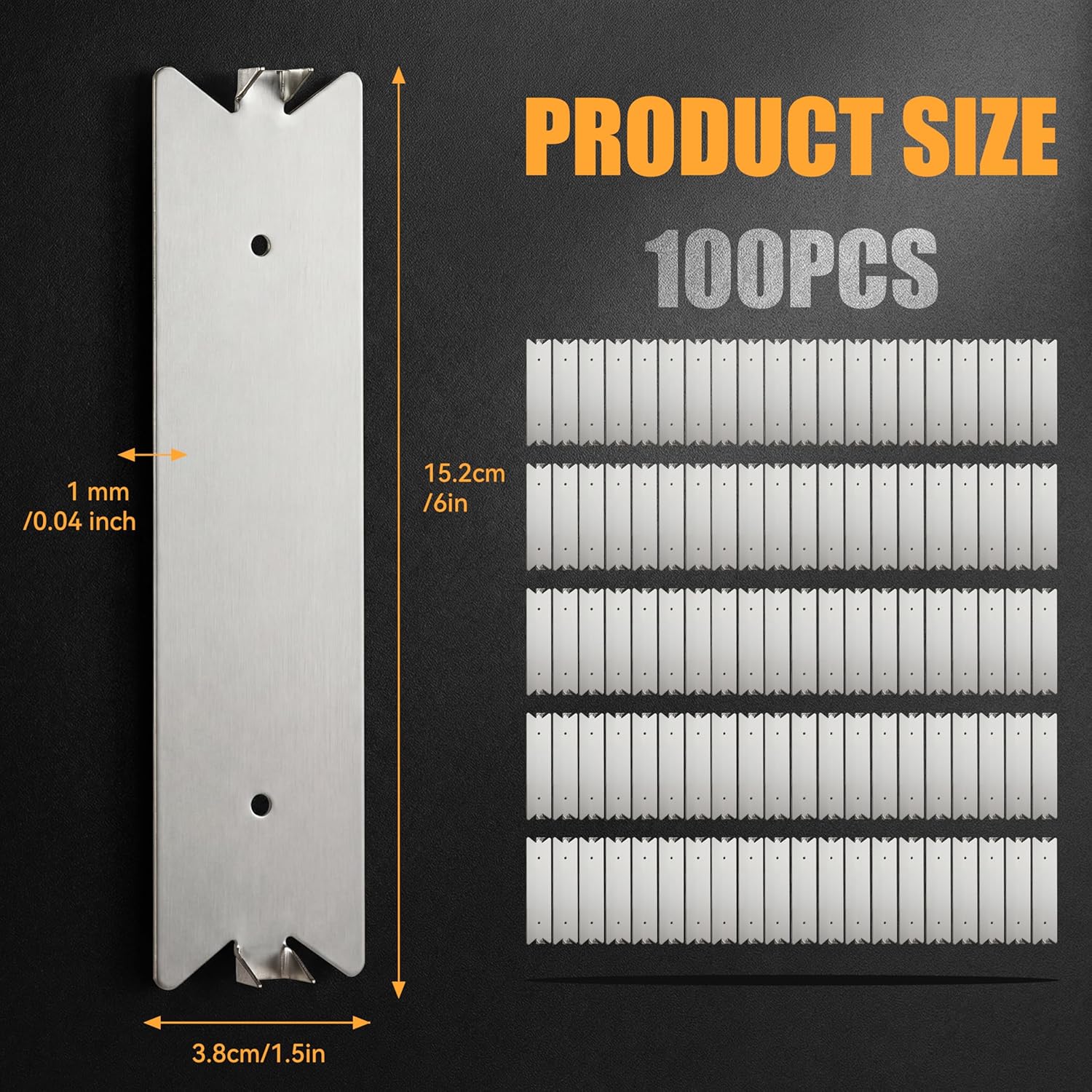 Specifications:Material: Galvanized SteelColor: Silver (Galvanized Finish)Product Size: 6 x 1.5 Inches (Approx. 15.2 x 3.8 cm)Design: Pointed Prongs & Pre-drilled HolesPackage Includes:100 Pcs Nail Plates for Wood Studs (6 x 1.5 Inch)Important Notes:Please allow slight size variations due to manual measurement.The actual product color may vary slightly from the images due to photographic lighting or individual monitor settings.These plates have pointed edges. For safe handling, we recommend wearing protective work gloves during installation. Please store them in a safe place away from children and pets.